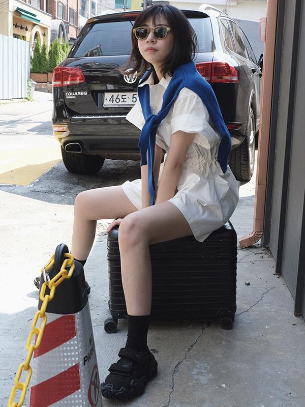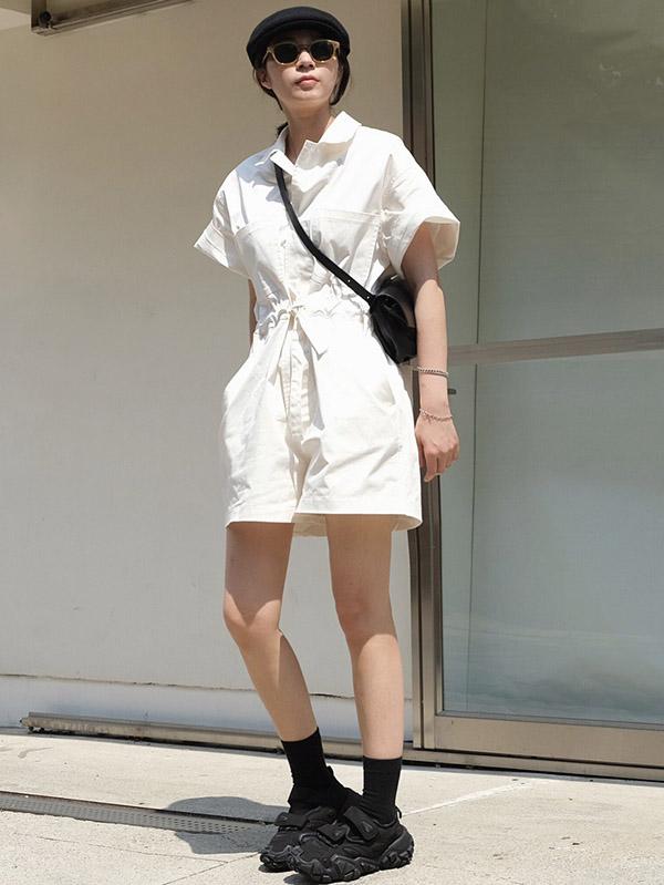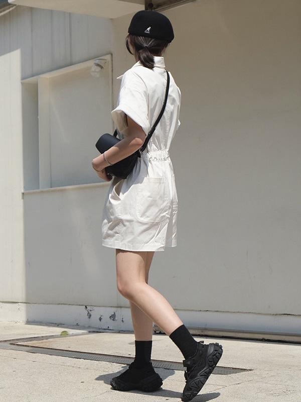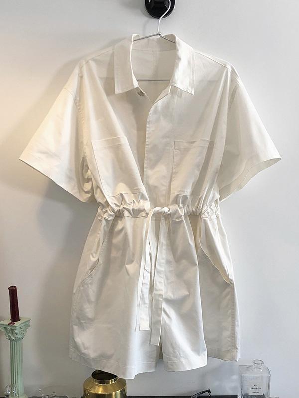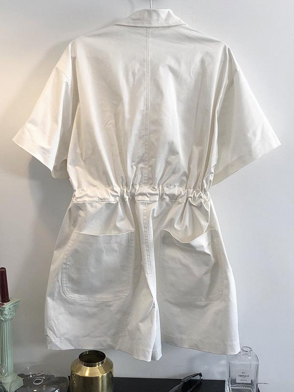 Vintage Simple Tooling Solid Wide Leg Shortts Rompers