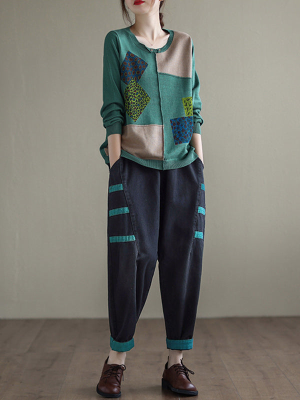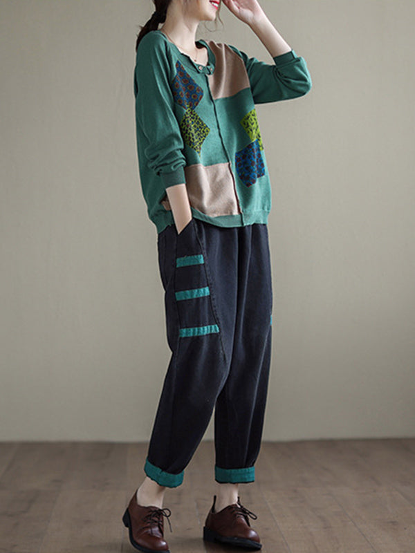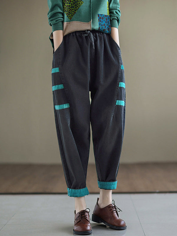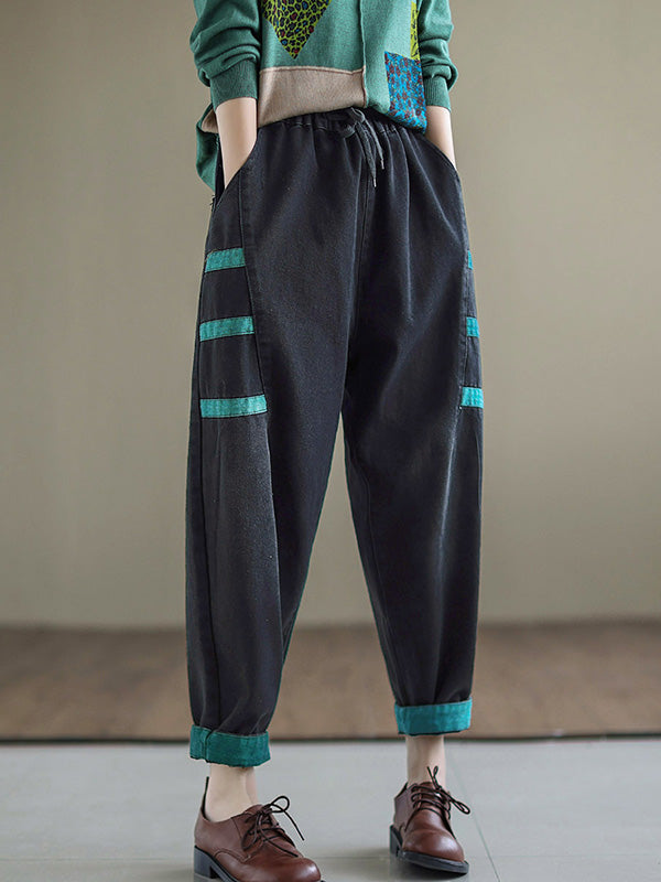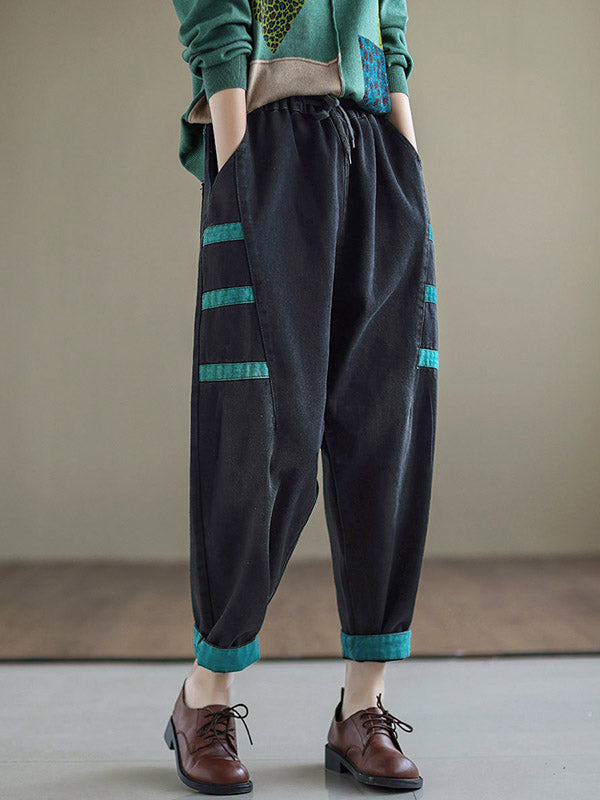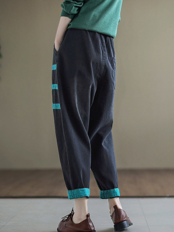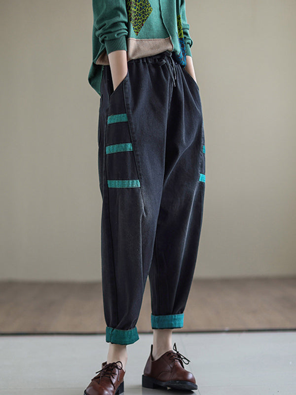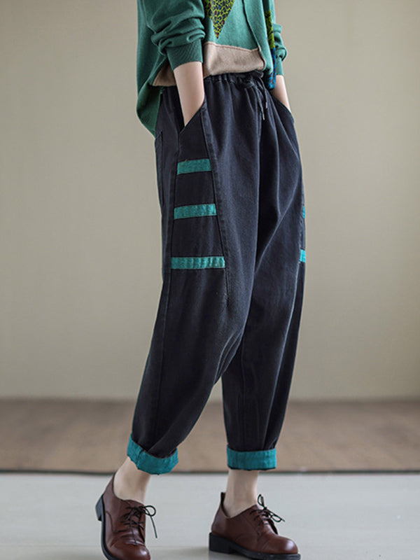 Vintage Split-Joint Empire Waisted Wide Leg Harem Jean Pants