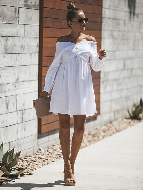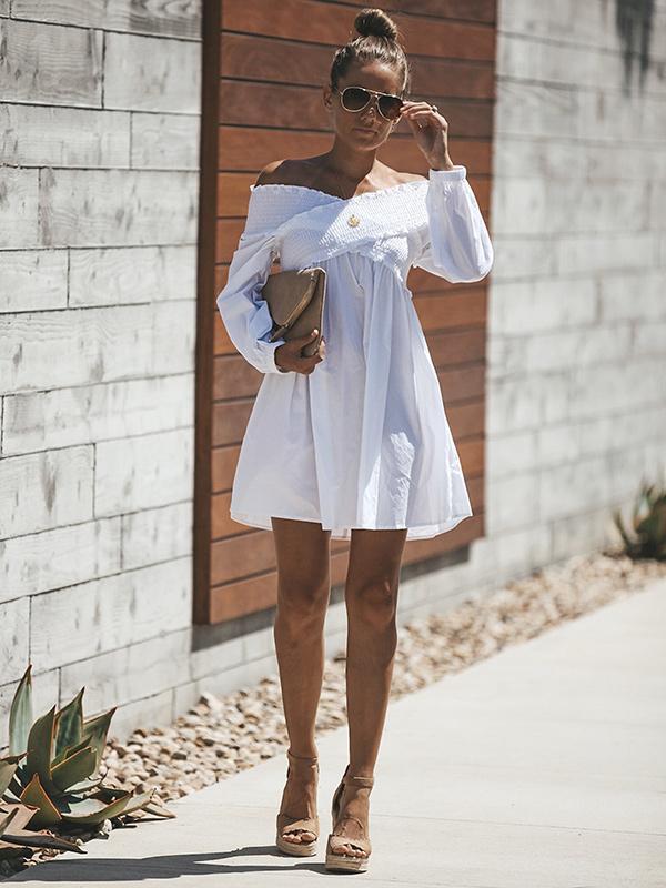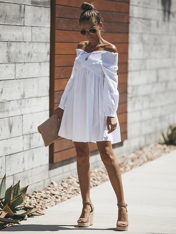 White Hollow Flared Sleeves Mini Dress