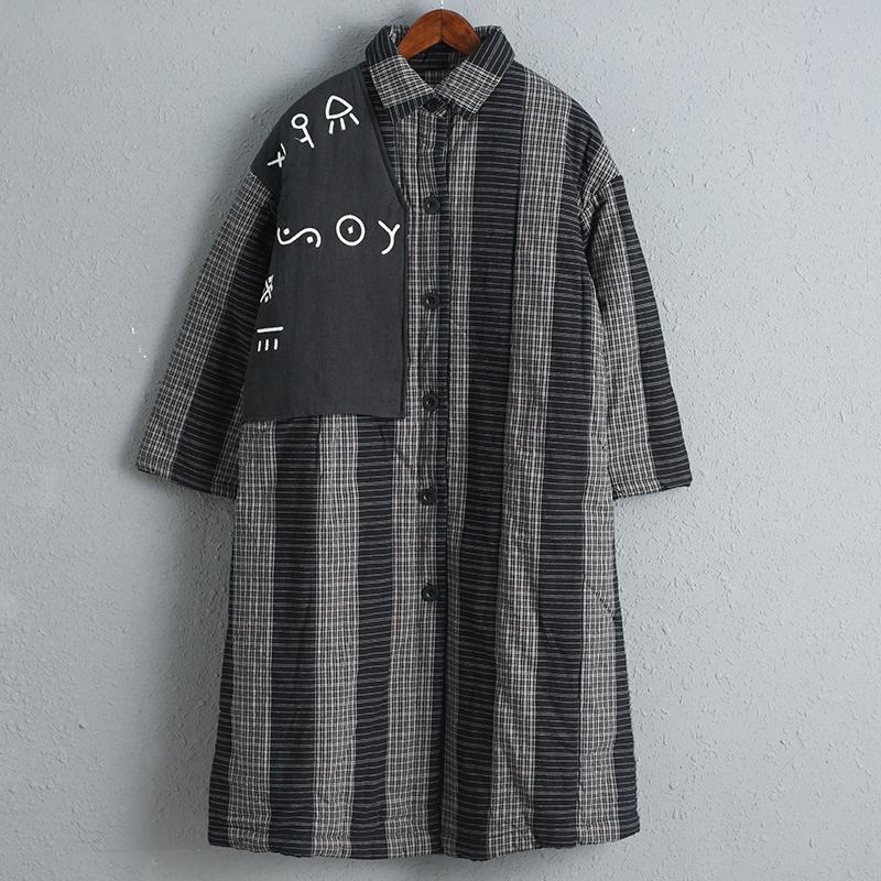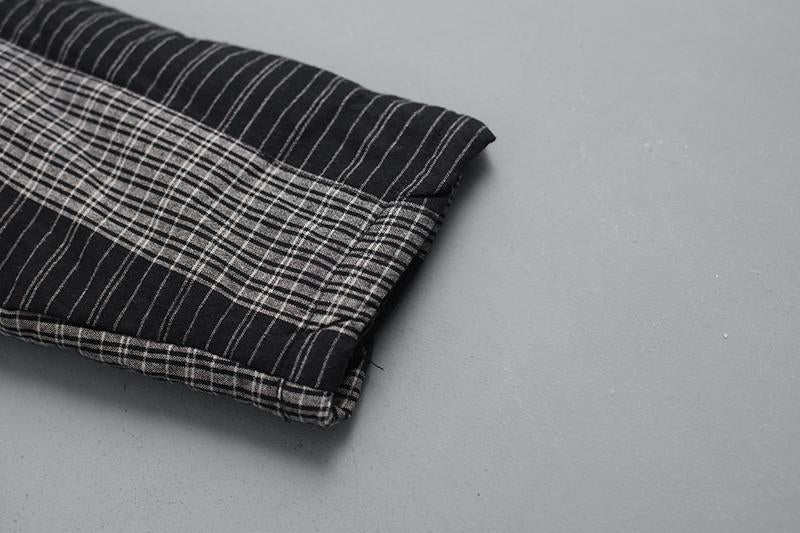 Winter Cotton Black Coat Warm Lattice Overcoat with Pockets