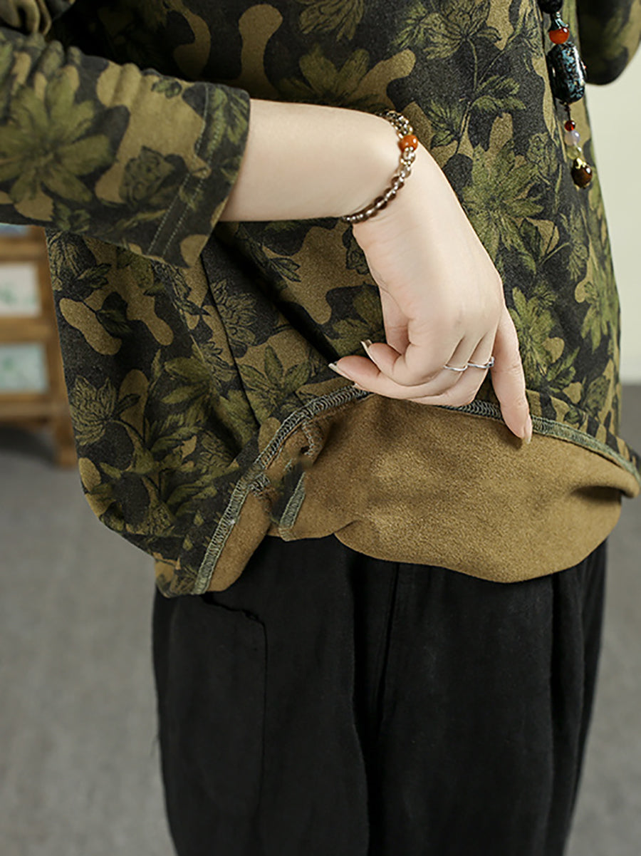 Women Autumn Artsy Flower Half-Turtleneck Blouse