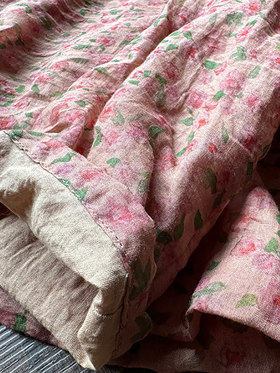 Women Autumn Artsy Turtleneck Floral Ramie Blouse