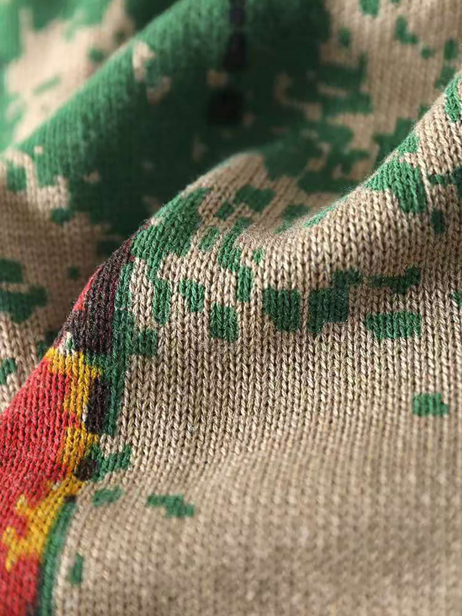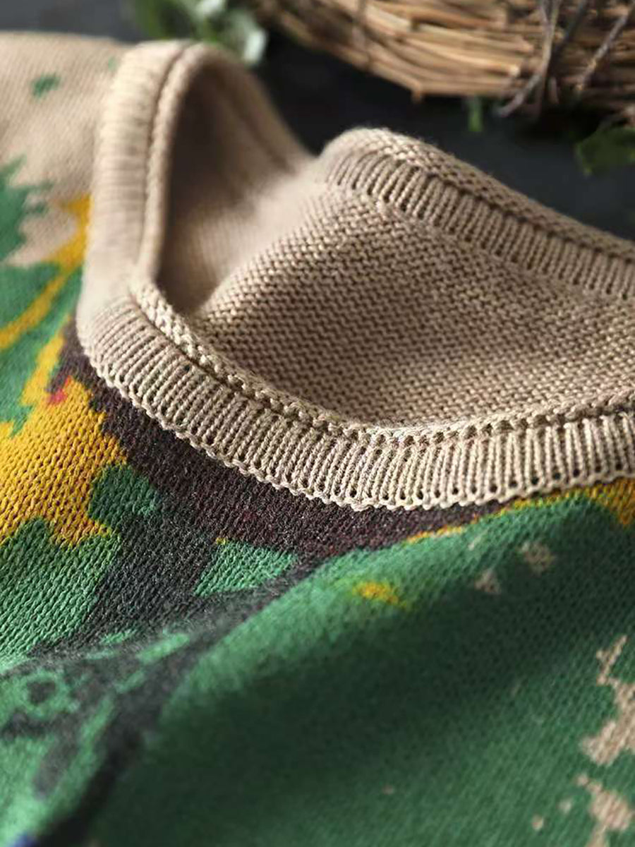 Expertly crafted from high-quality cotton. this knitted sweater features a stylish colorblock pattern and an elegant O-neck collar. With full-length raglan sleeves and an artsy design. it's the perfect addition to your winter and autumn wardrobe.