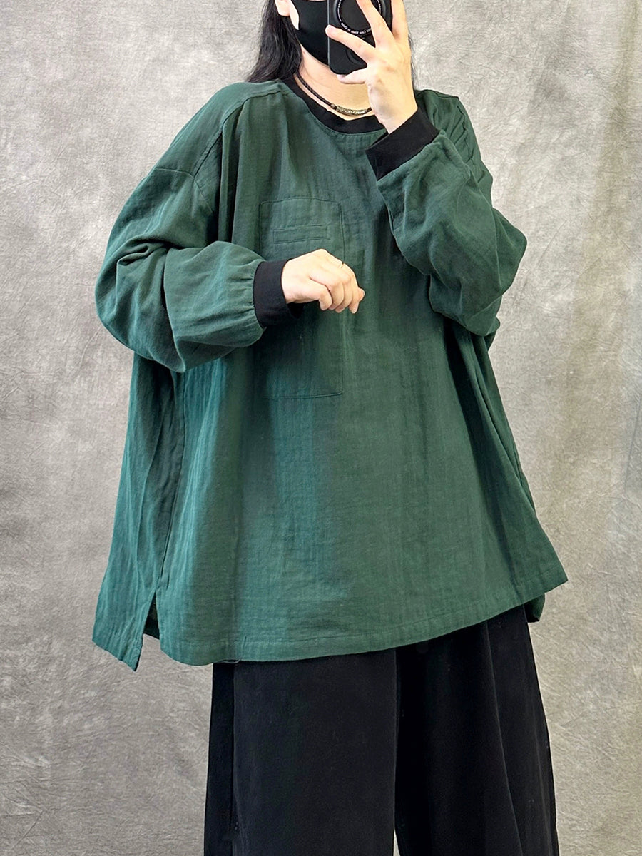 Women Autumn Casual Colorblock O-Neck Shirt