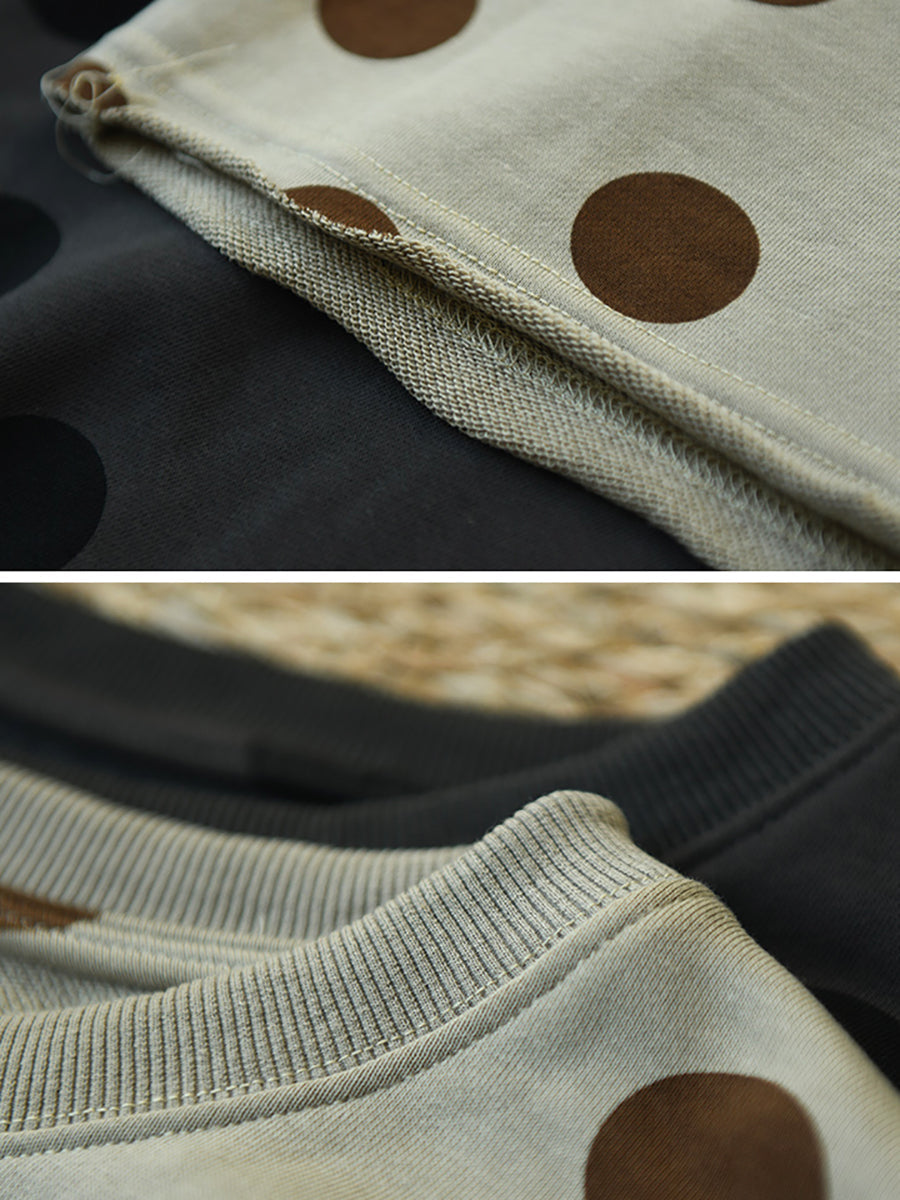 Plus Size Women Autumn Casual Dot Cotton O-Neck Shirt