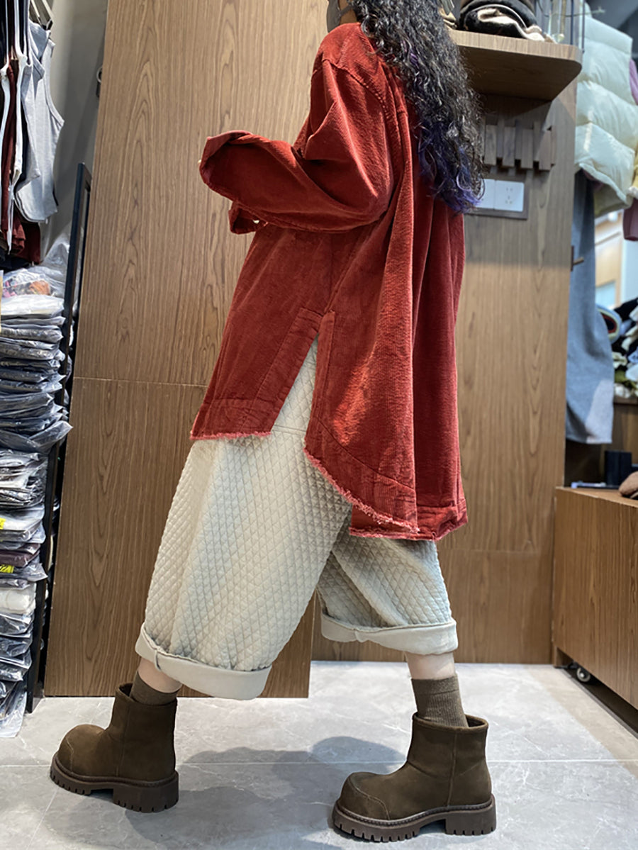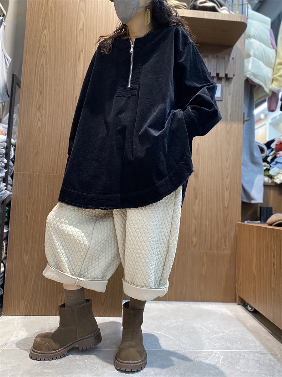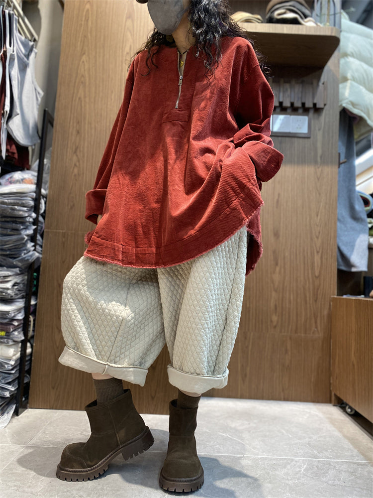 Plus Size Women Autumn Casual O-Neck Zipper Corduroy Sweatshirt