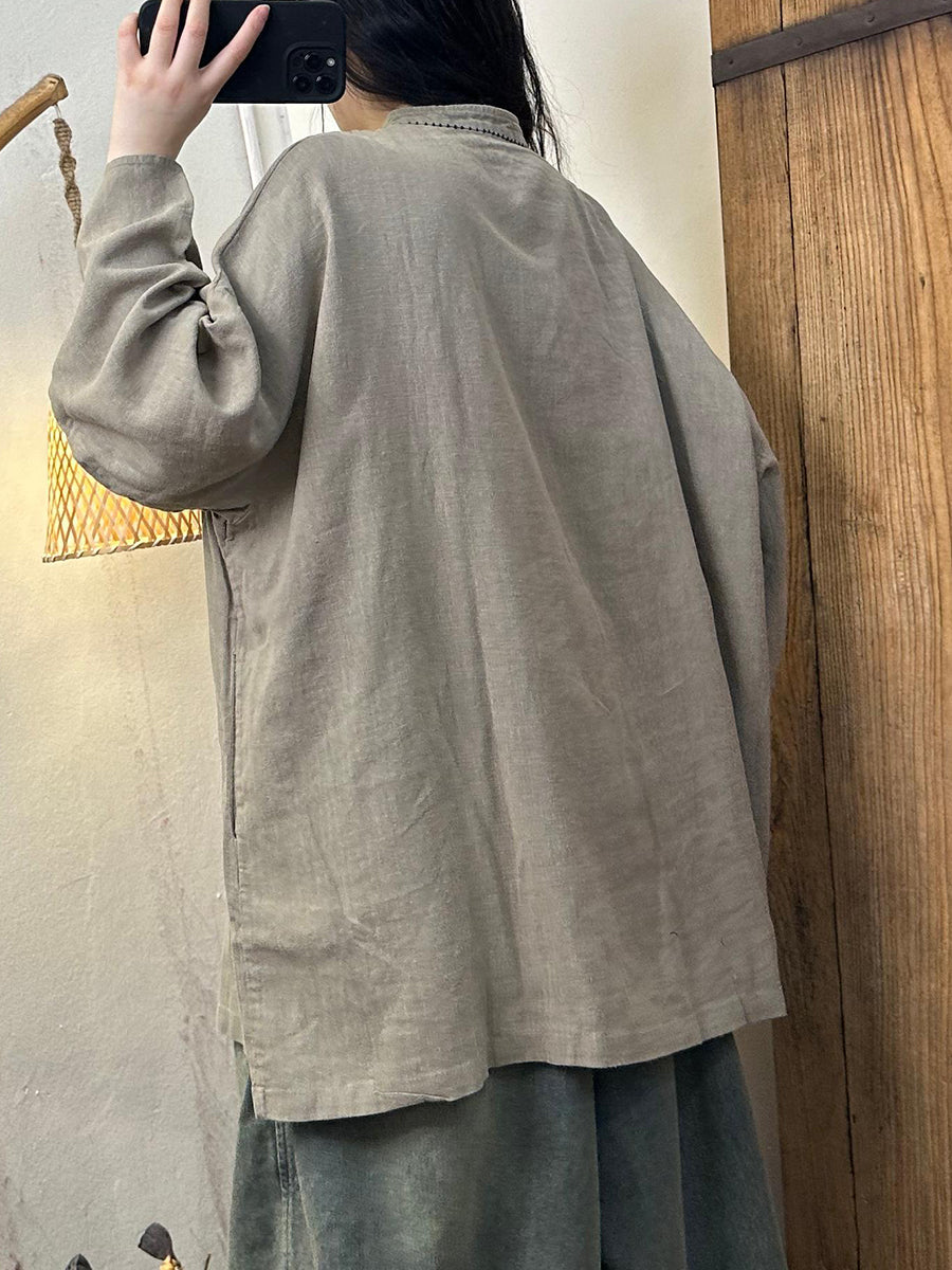 Women Autumn Casual Pure Color Stand Collar Shirt
