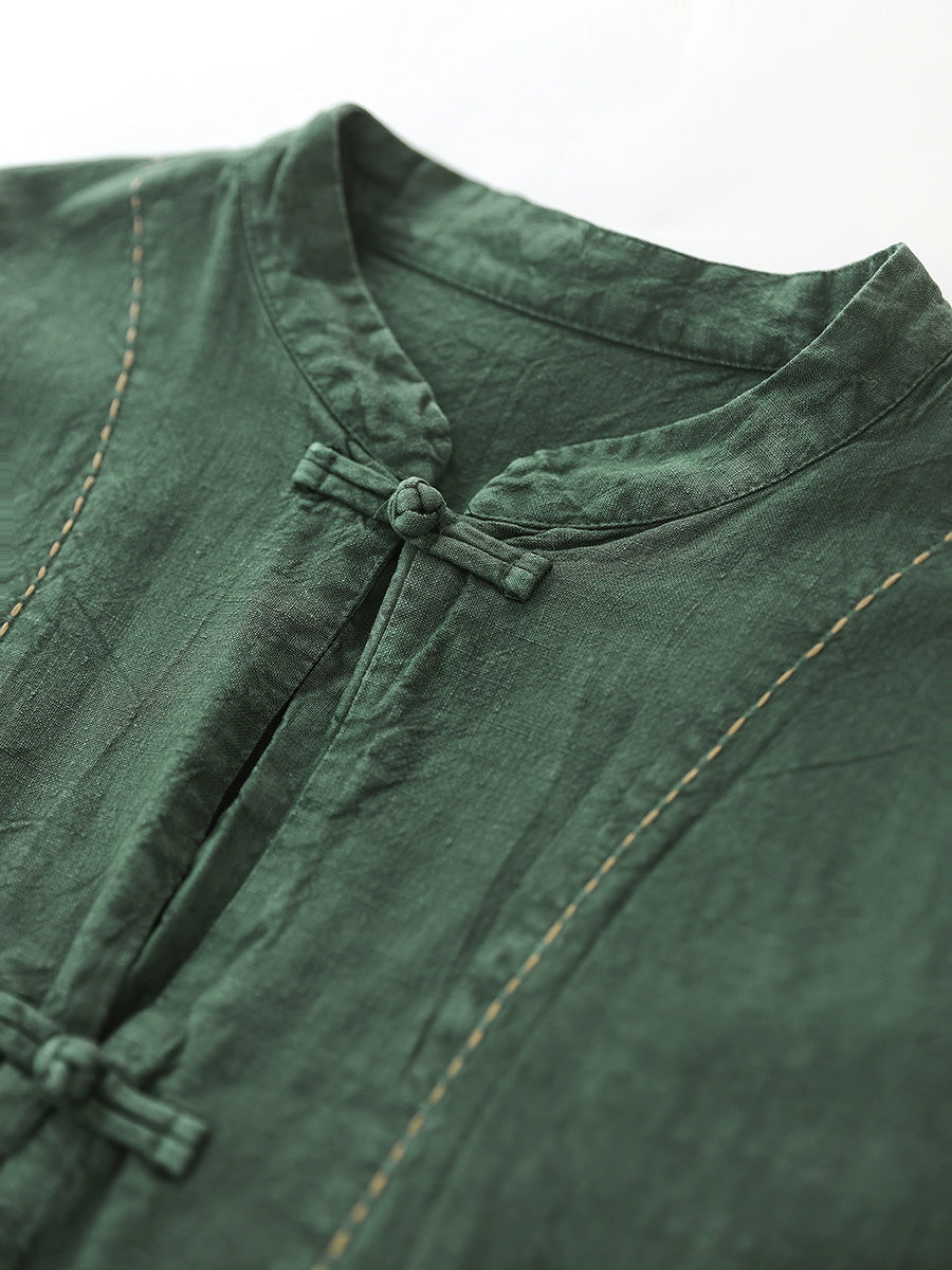 Women Autumn Ethnic Pure Color Stand Collar 100%Linen Coat