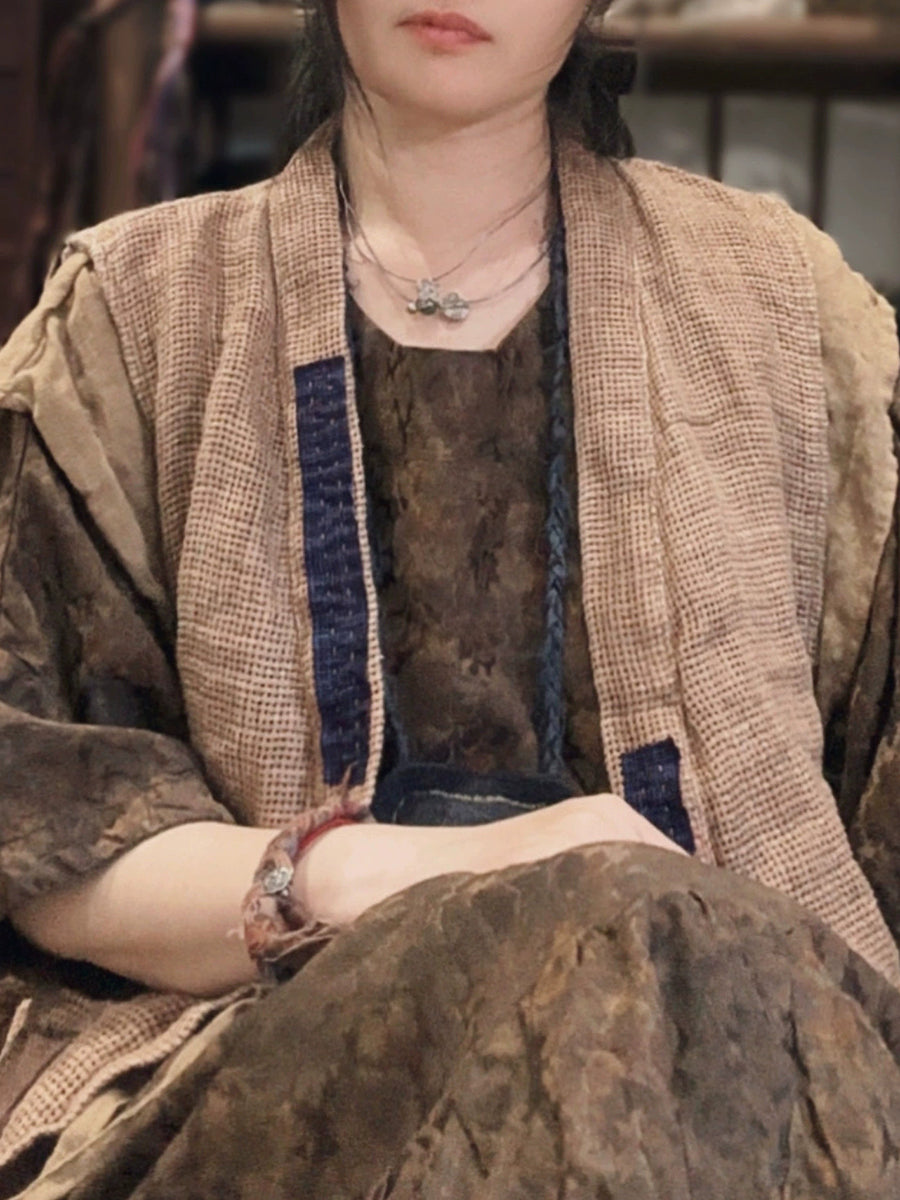 Women Autumn Retro Plaid Patch Linen V-Neck Vest