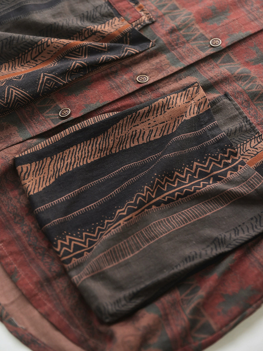 Women Autumn Retro Print 100%Cotton Turn-down Collar Shirt