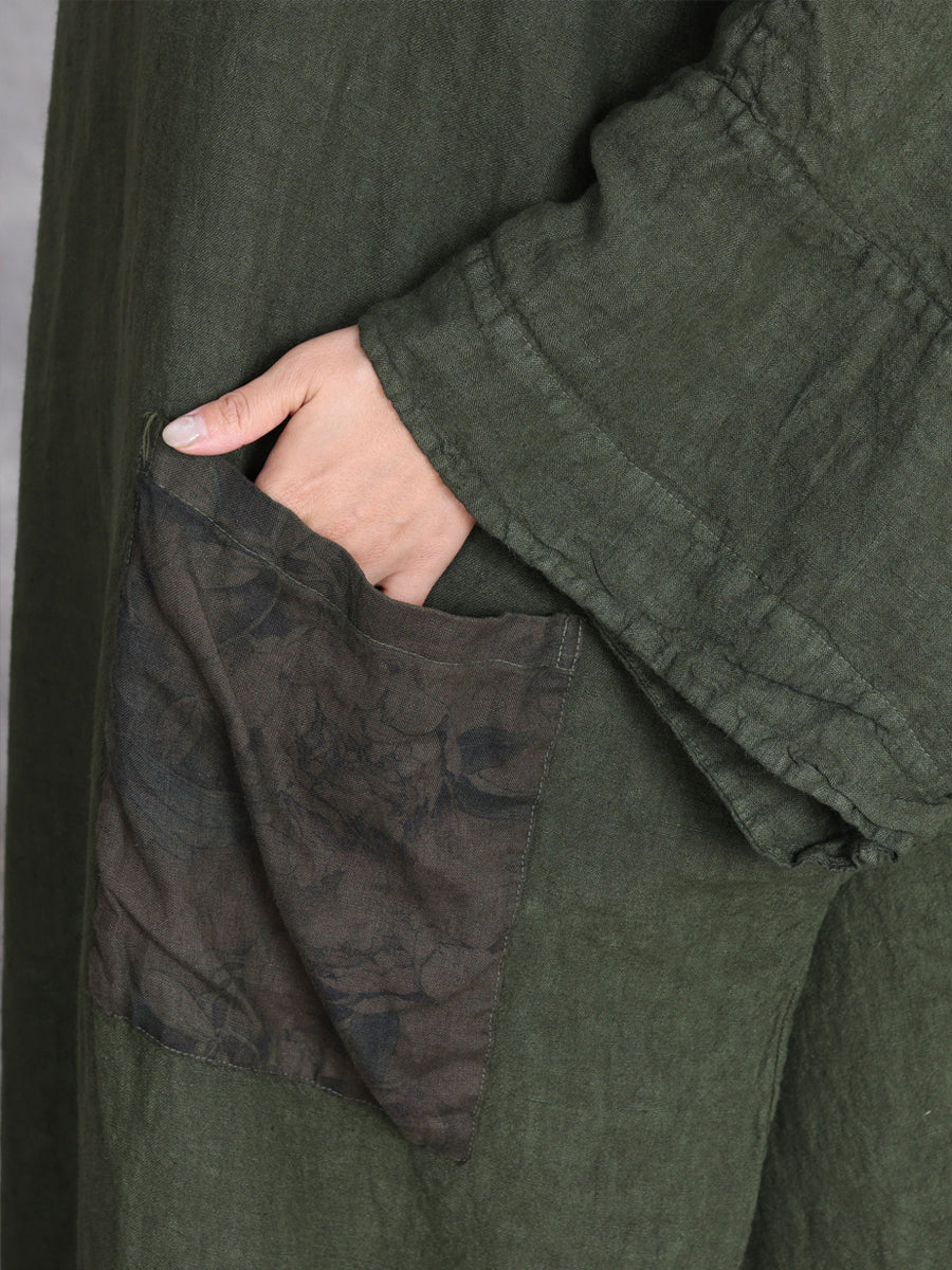 Women Autumn Vintage Spliced O-Neck Linen Maxi Dress