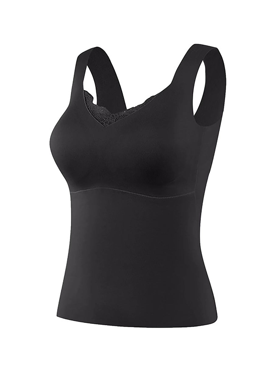 Women Autumn Warm Pure Color V-Neck Lace Base Vest