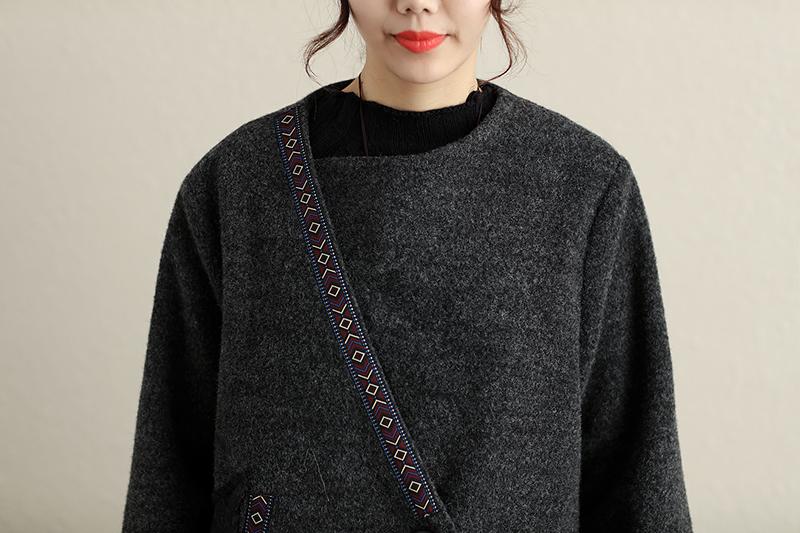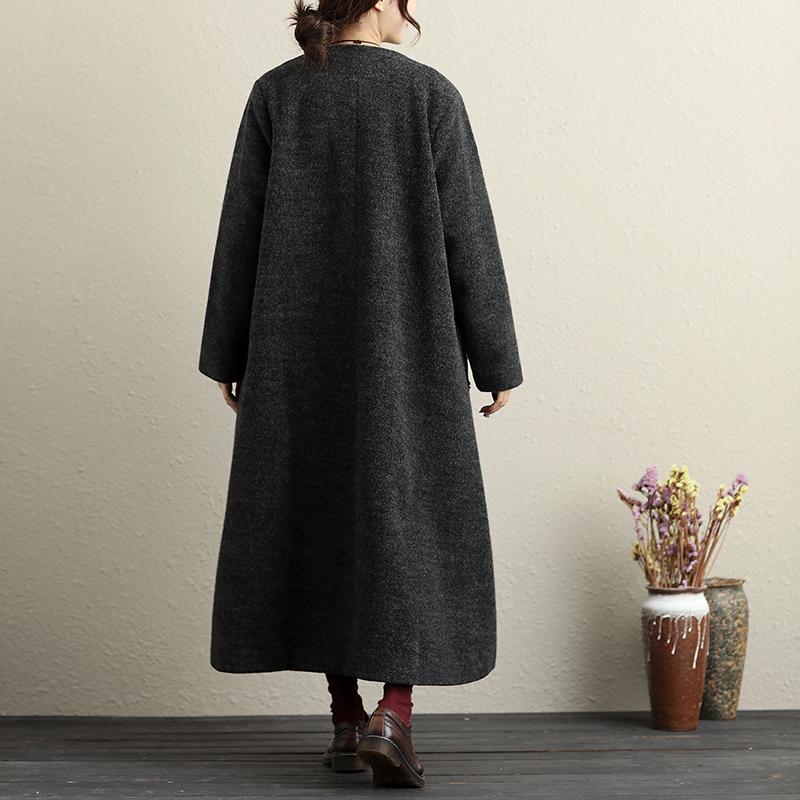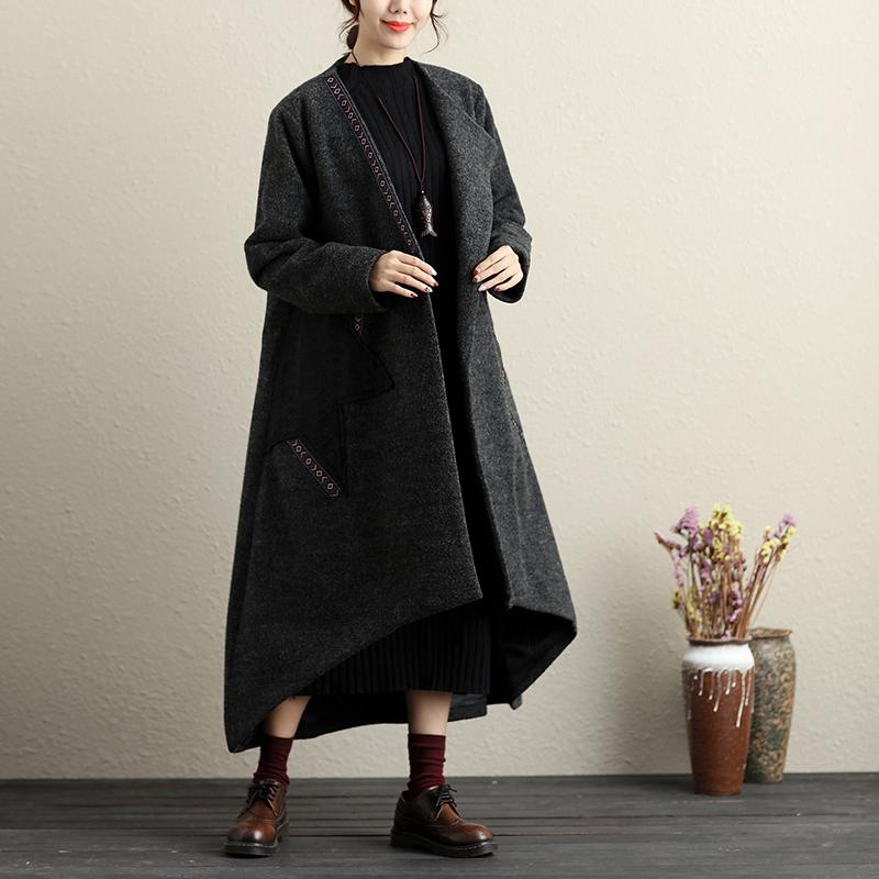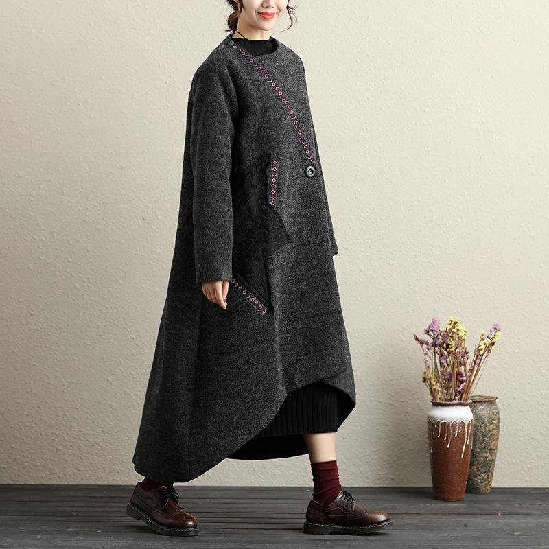 Women Autumn Winter Button-Front Applique Irregular Long Sleeve Coat