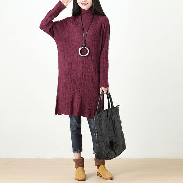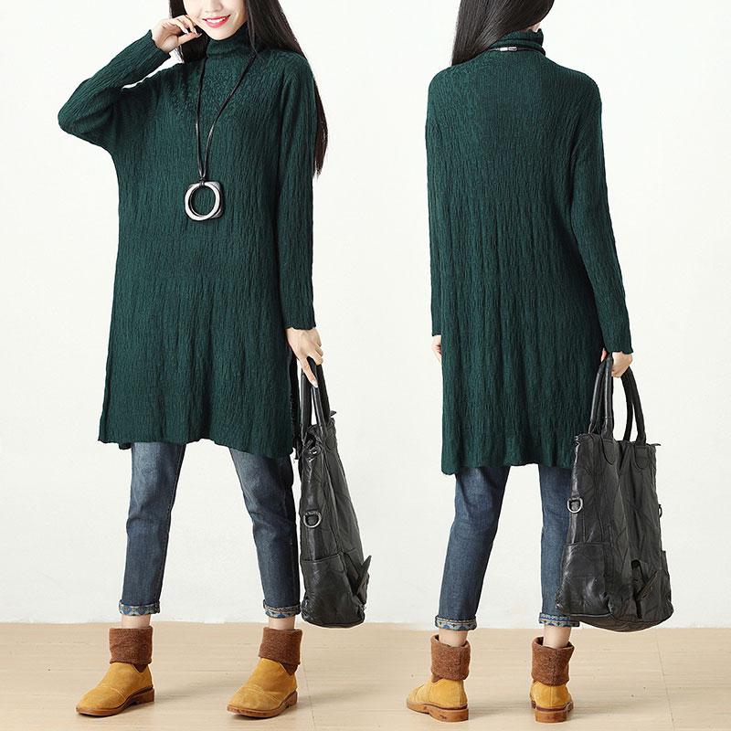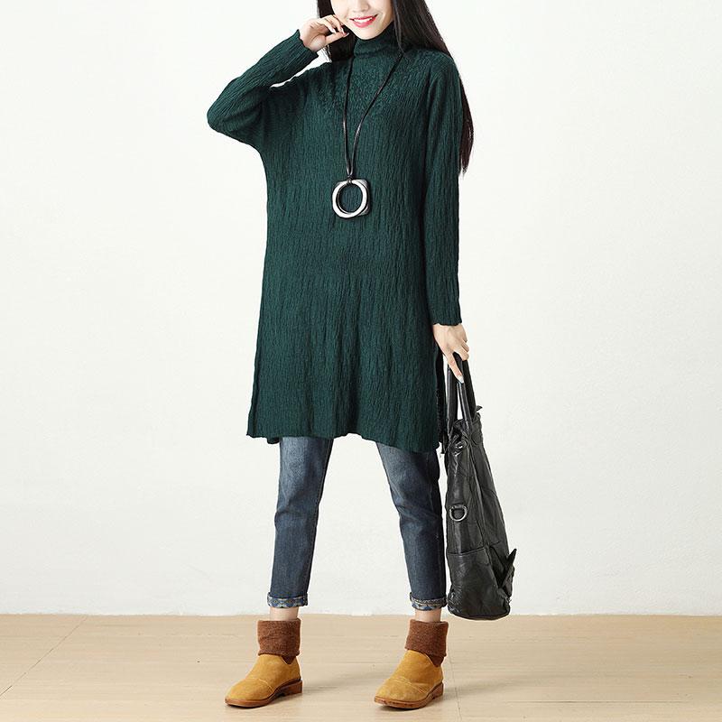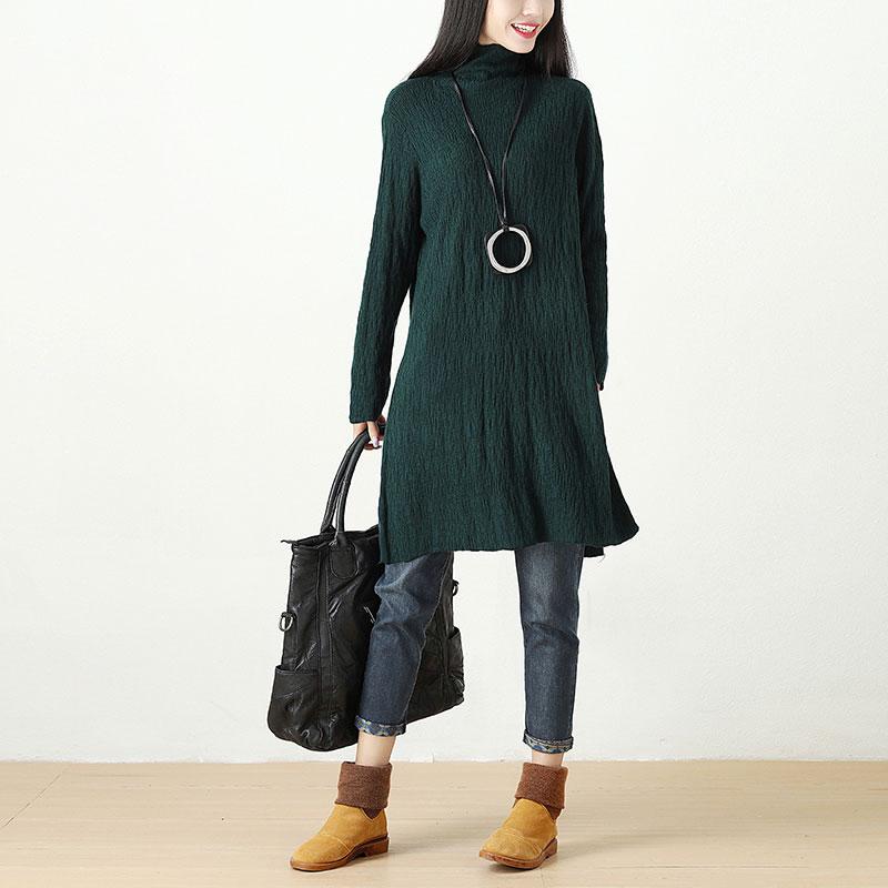 Women Autumn Winter Turtle Neck Long Sleeve Green Dress