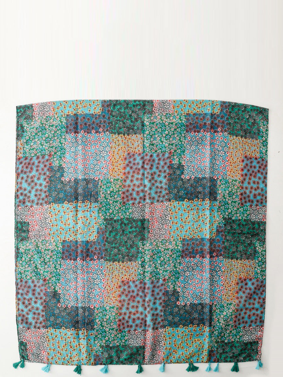 Women Bohemia Floral Patchwork Tassel Shawl Scarf