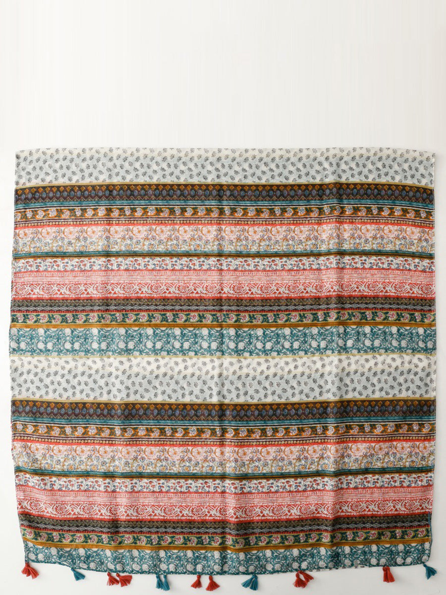 Women Bohemia Floral Spliced Tassel Shawl Scarf