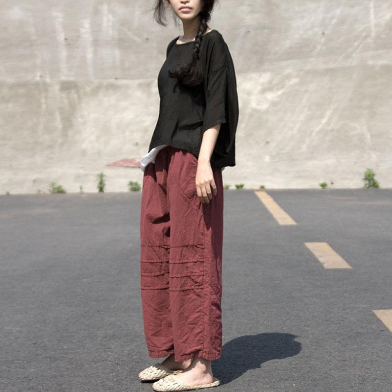 Cotton and flax loose pants for women this summer. Straight leg, ankle-length, large pockets. It is very common to pair it with casual t-shirt.