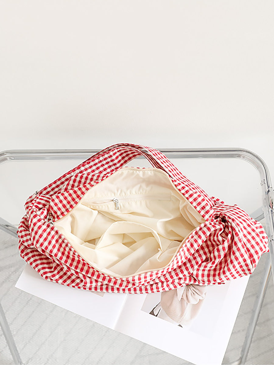 Women Casual Plaid Canvas Dumpling Shoulder Bag