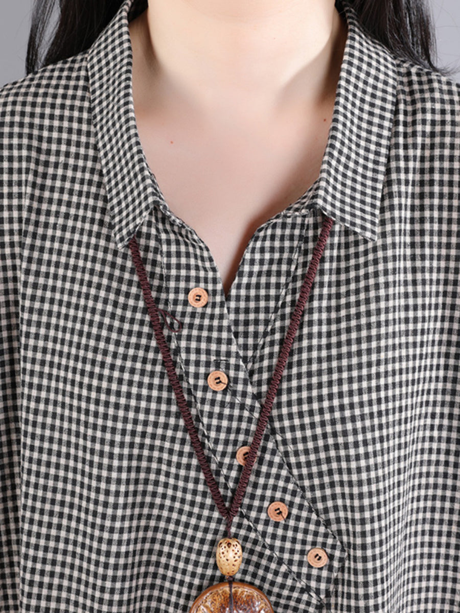 Plus Size Women Casual Plaid Slant Closure Button Loose Dress