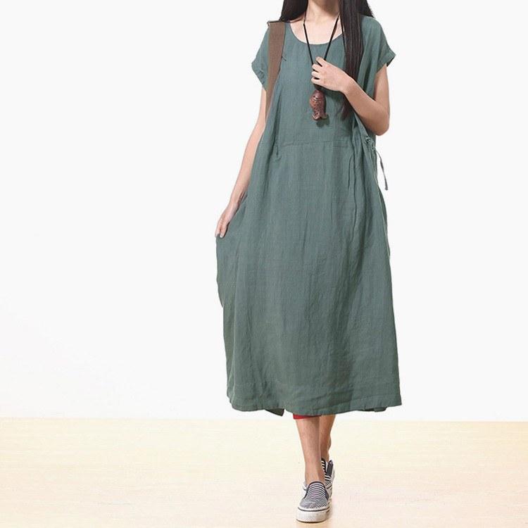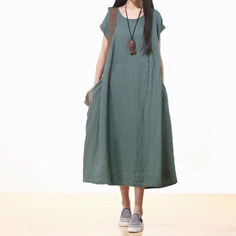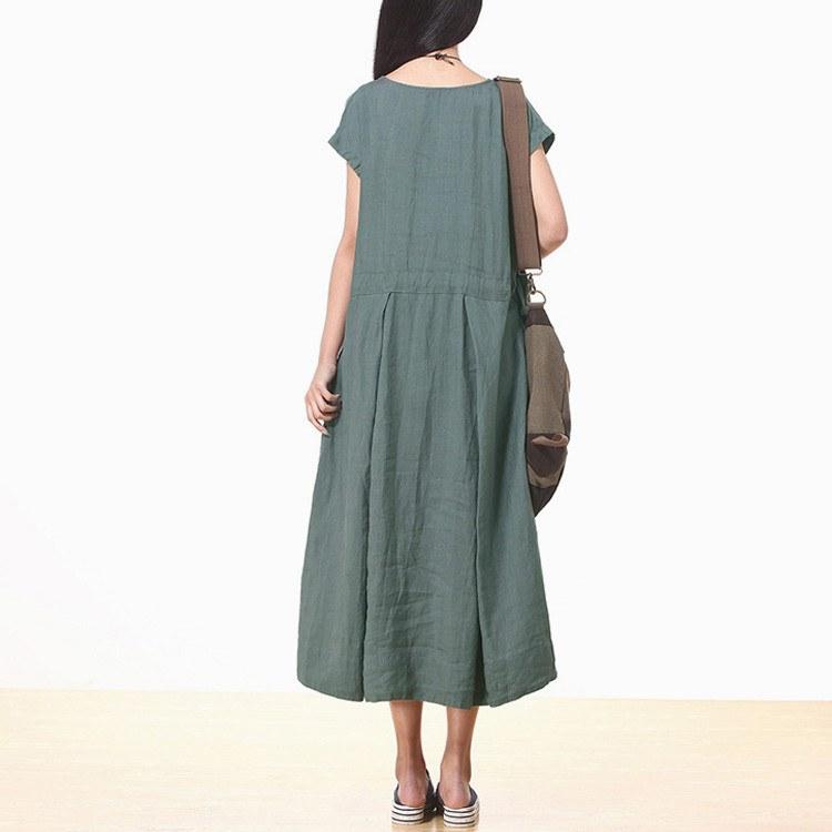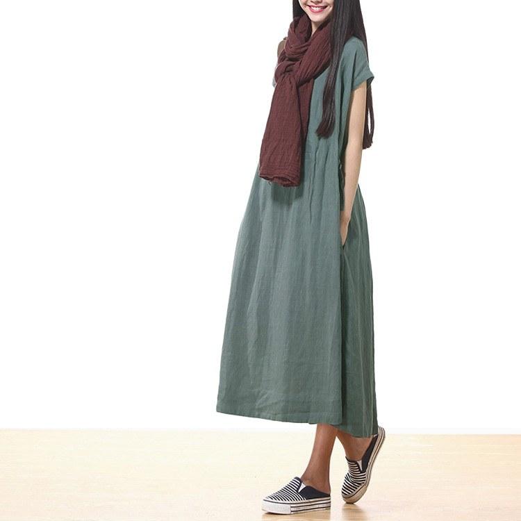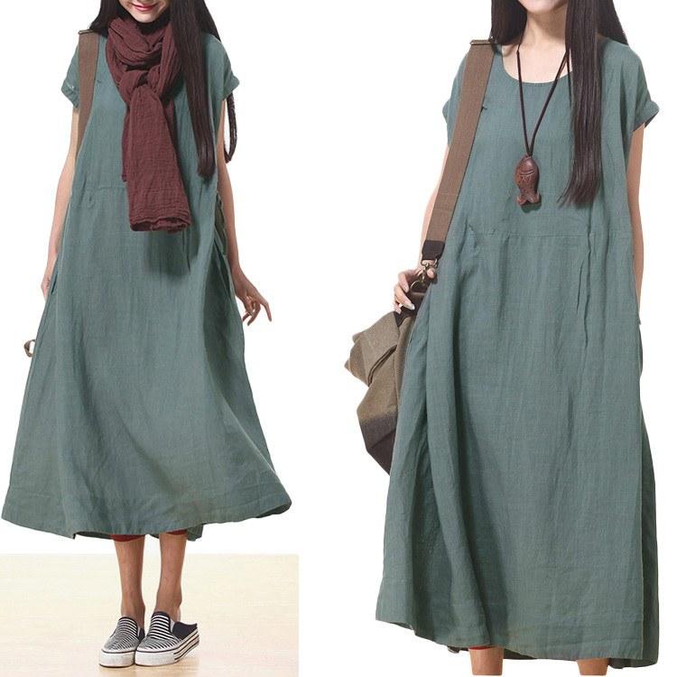 Custom made Women Cotton Linen Loose Fitting Short Sleeve Summer Maxi Dress