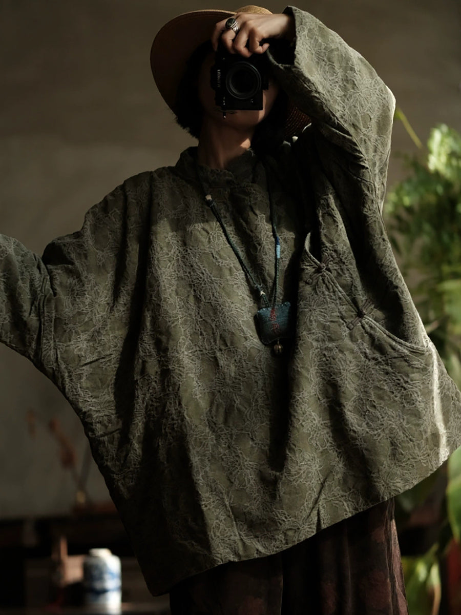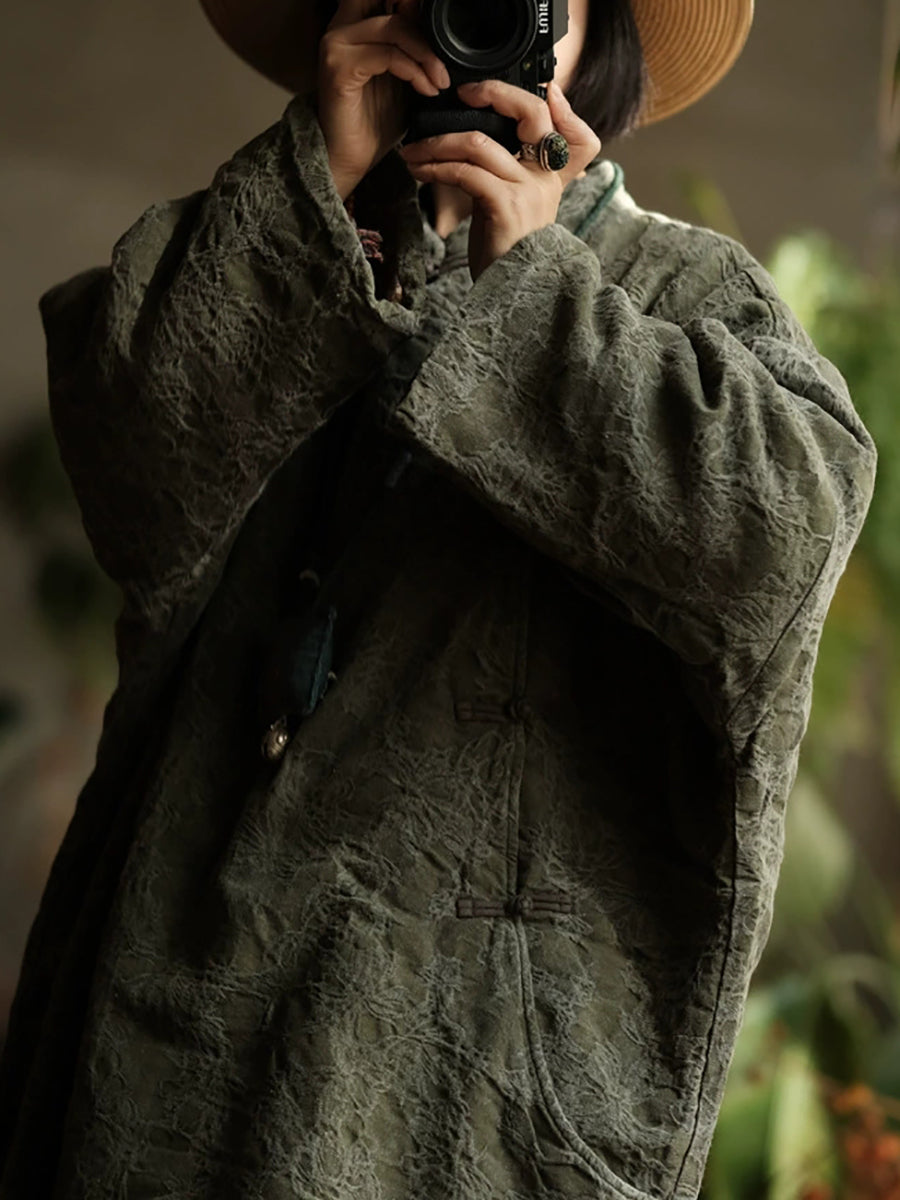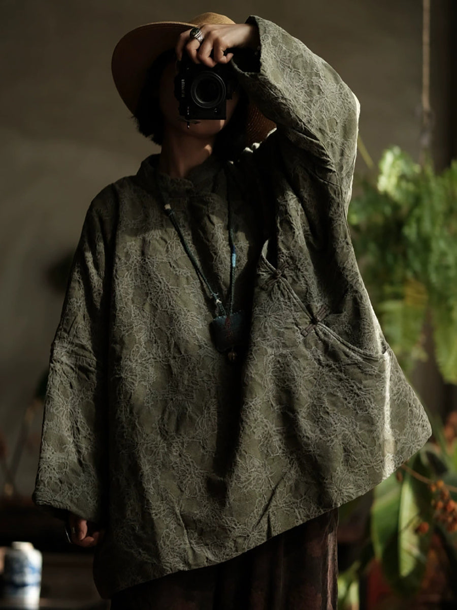 Women Ethnic Autumn Jacquard Stand Collar Coat