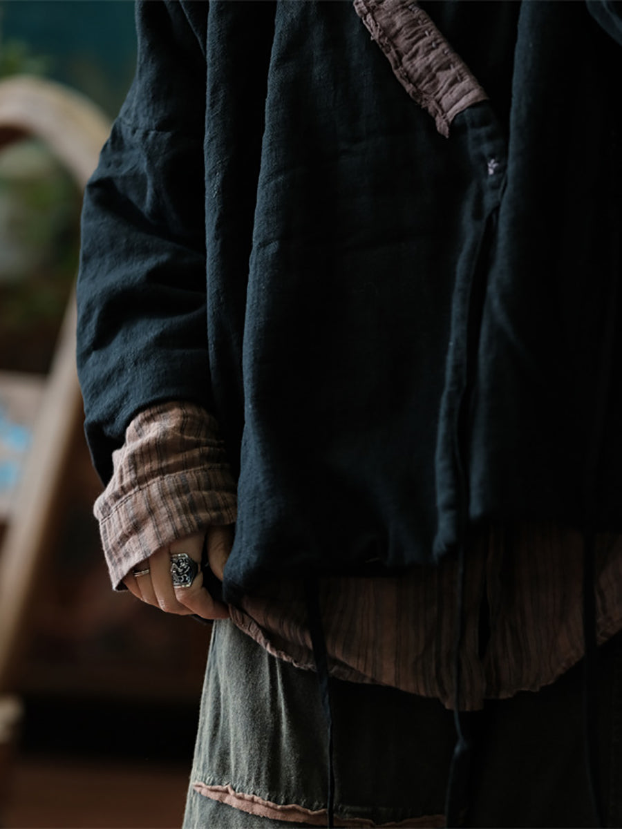Women Ethnic Spliced V-neck Linen Coat