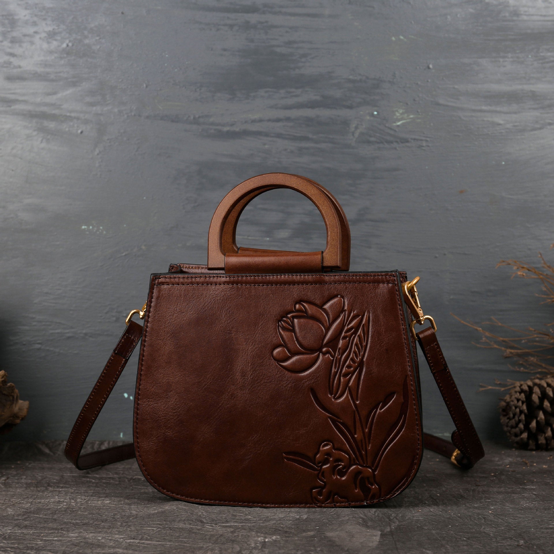 WOMEN GENUINE LEATHER VINTAGE TOTEM DESIGNER HANDBAG SHOULDER BAG