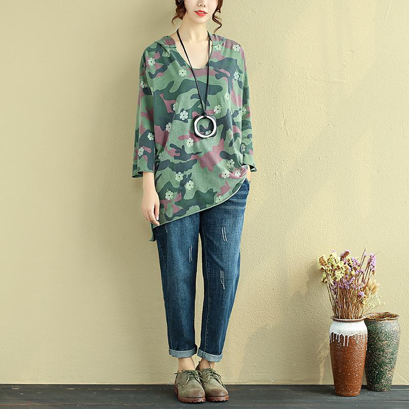 Women Hoodies Three Quarter Sleeve Printed Green Shirt