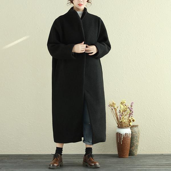 Women Lapel Snap-Front Long Sleeve Long Coat