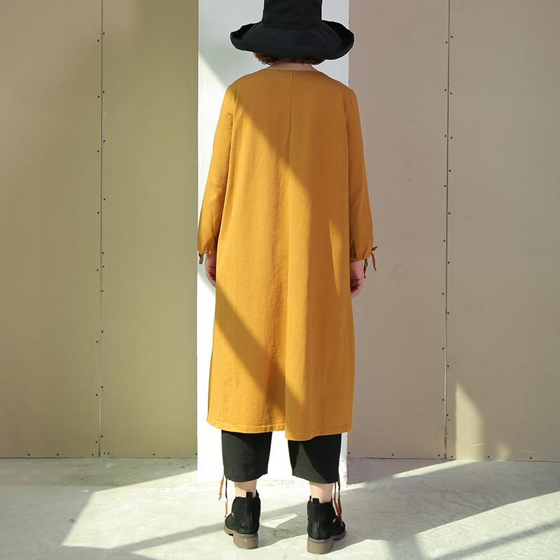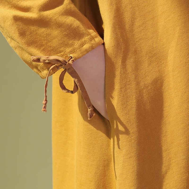 Women Long Sleeve Lacing Slit Loose Solid Dress