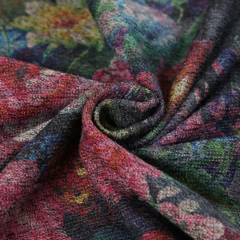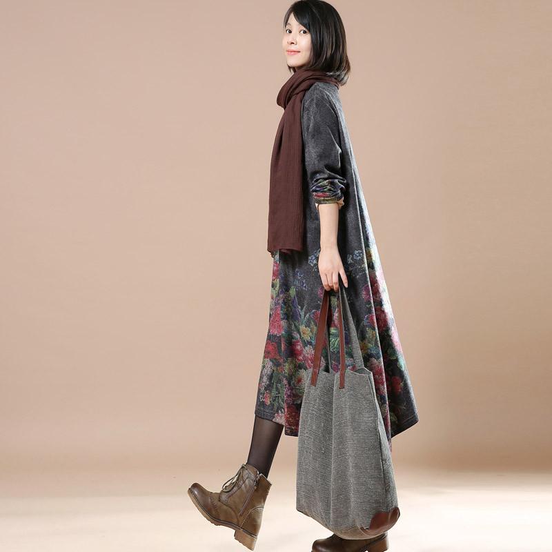 Women Print Casual Loose Round Neck Long Sleeve Dress