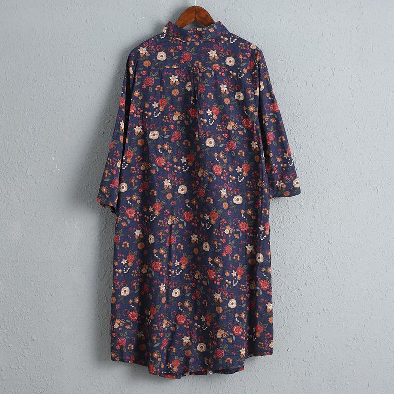 Women Printed Floral Dress Three Quarter Sleeve Shirt