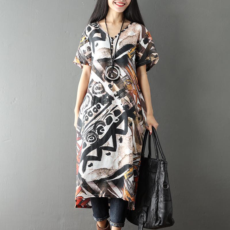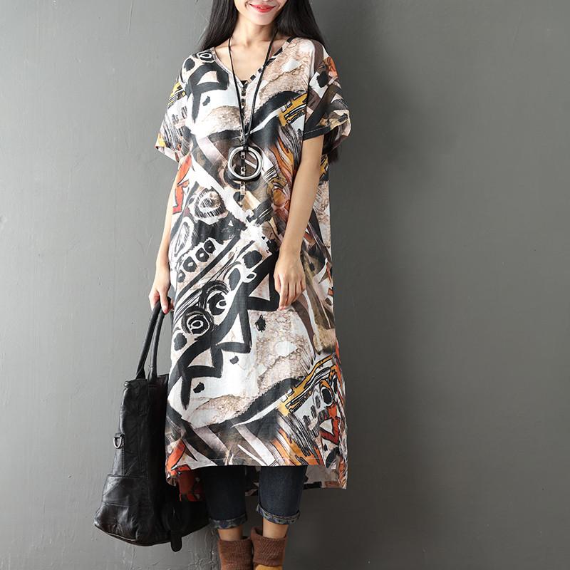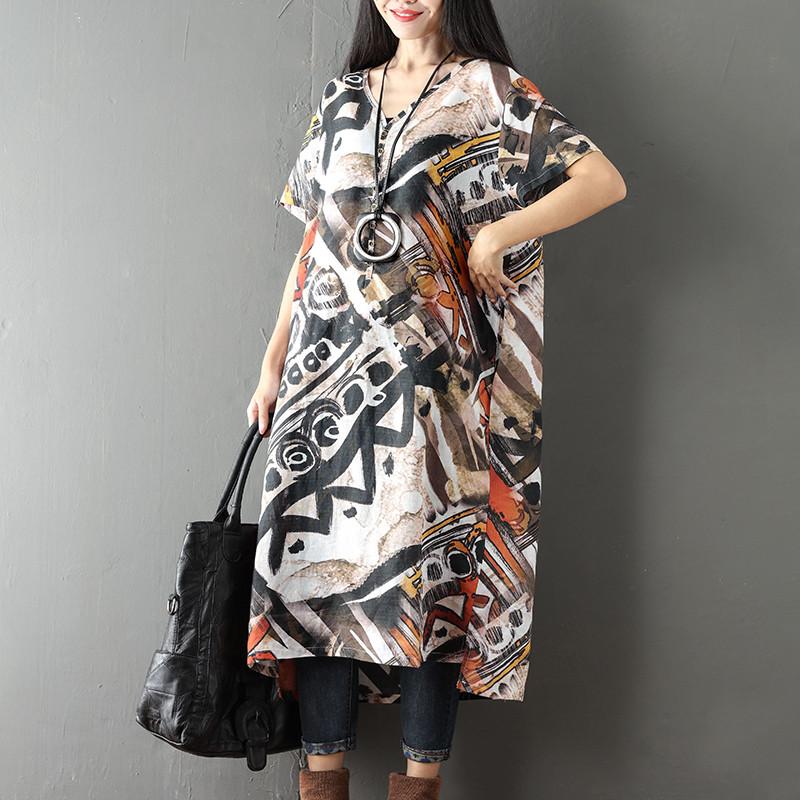 Women Printed Retro Casual Loose Short Sleeve Dress