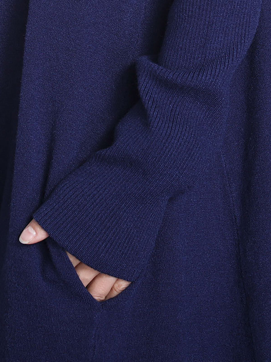 Plus Size Women Pure Color Knitted High Neckline Dress