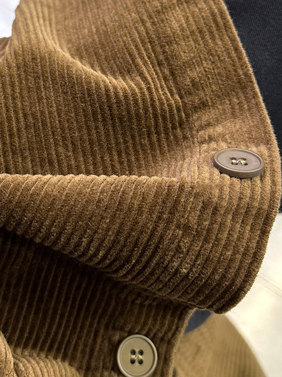 Plus SizeWomen Retro Autumn Pure Color Hooded Corduroy Coat