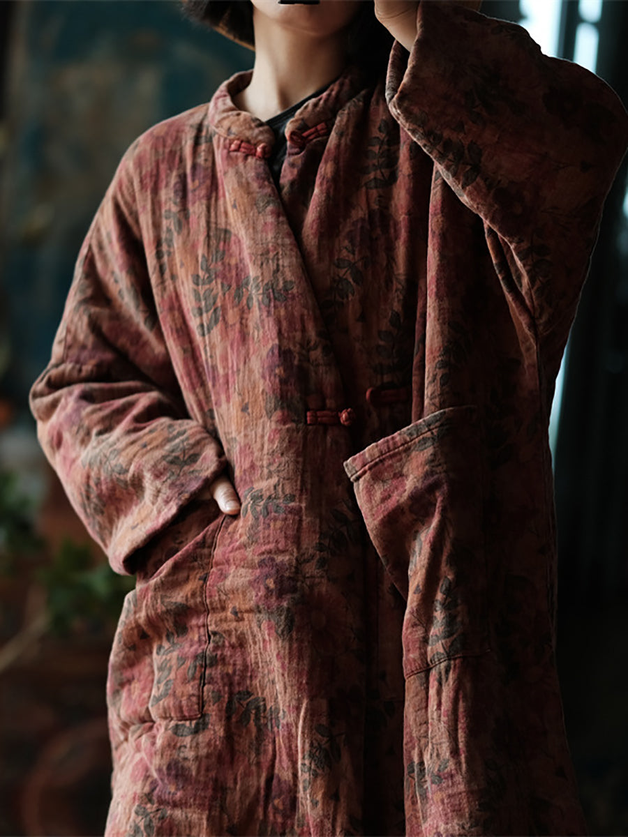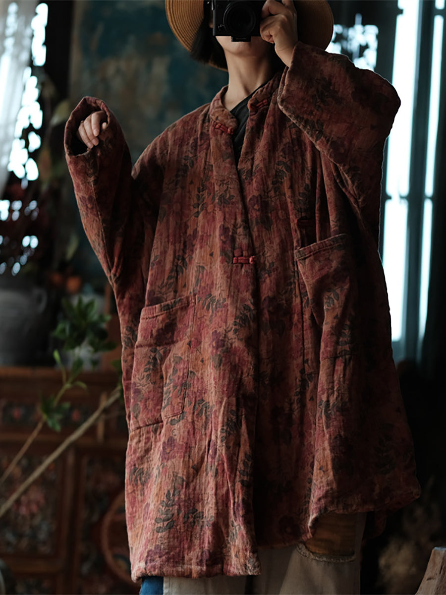 Ideal for cooler weather. this coat is crafted from a durable cotton blend and features an elegant floral pattern and a timeless raglan-style sleeve.