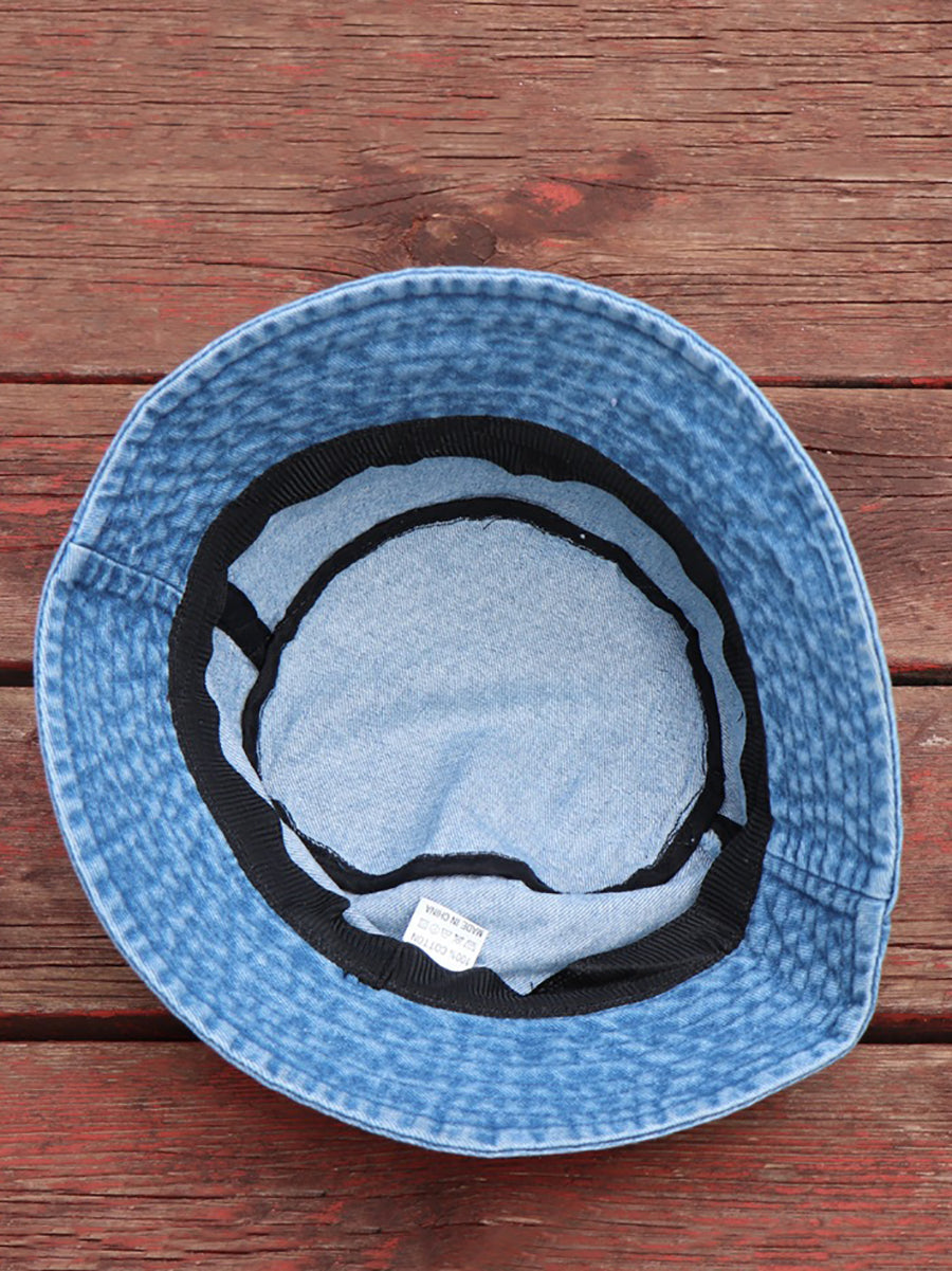 Women Retro Flower Embroidery Denim Bucket Hat