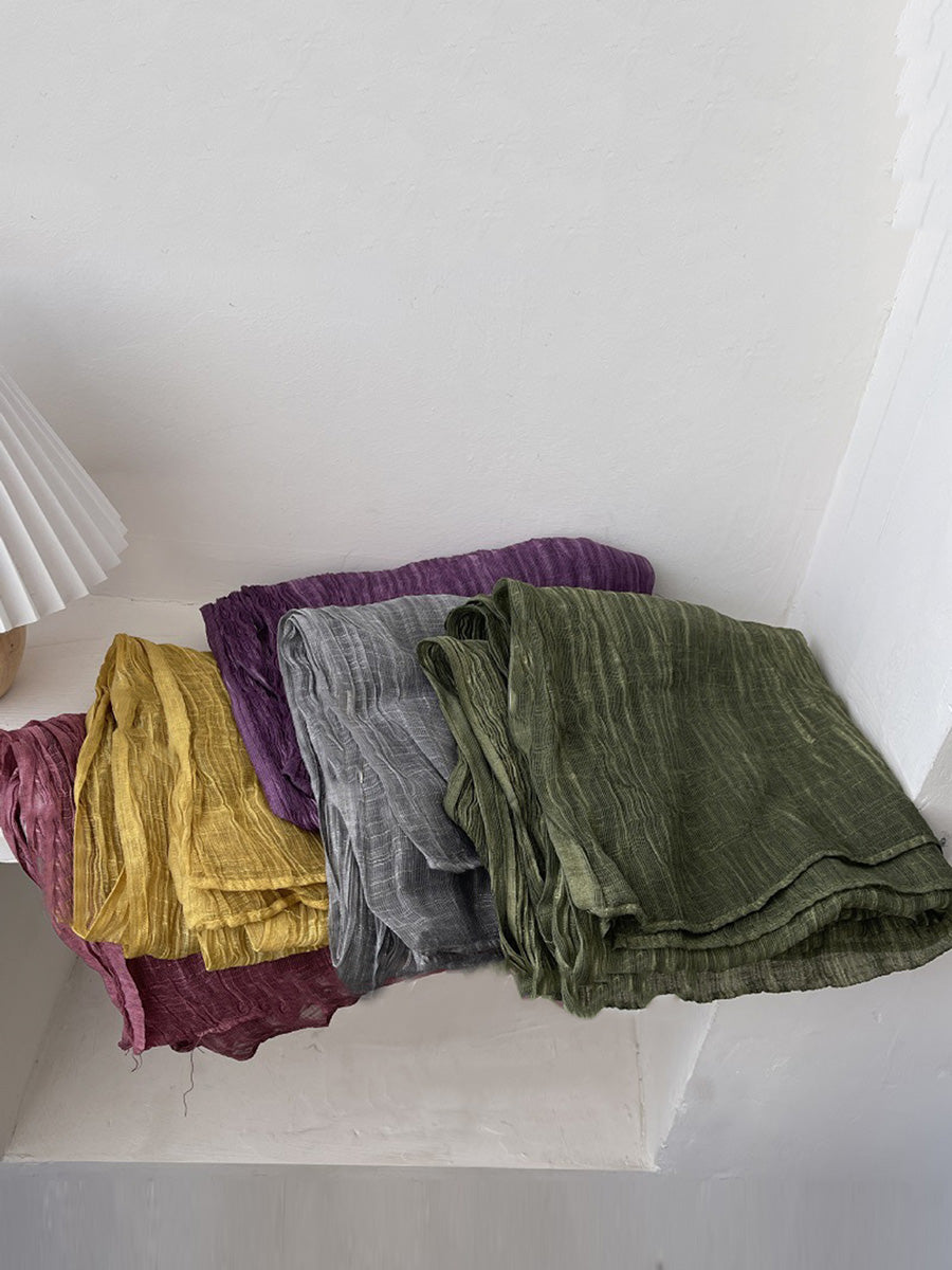 Women Retro Shirred Pure Color Shaw Scarf