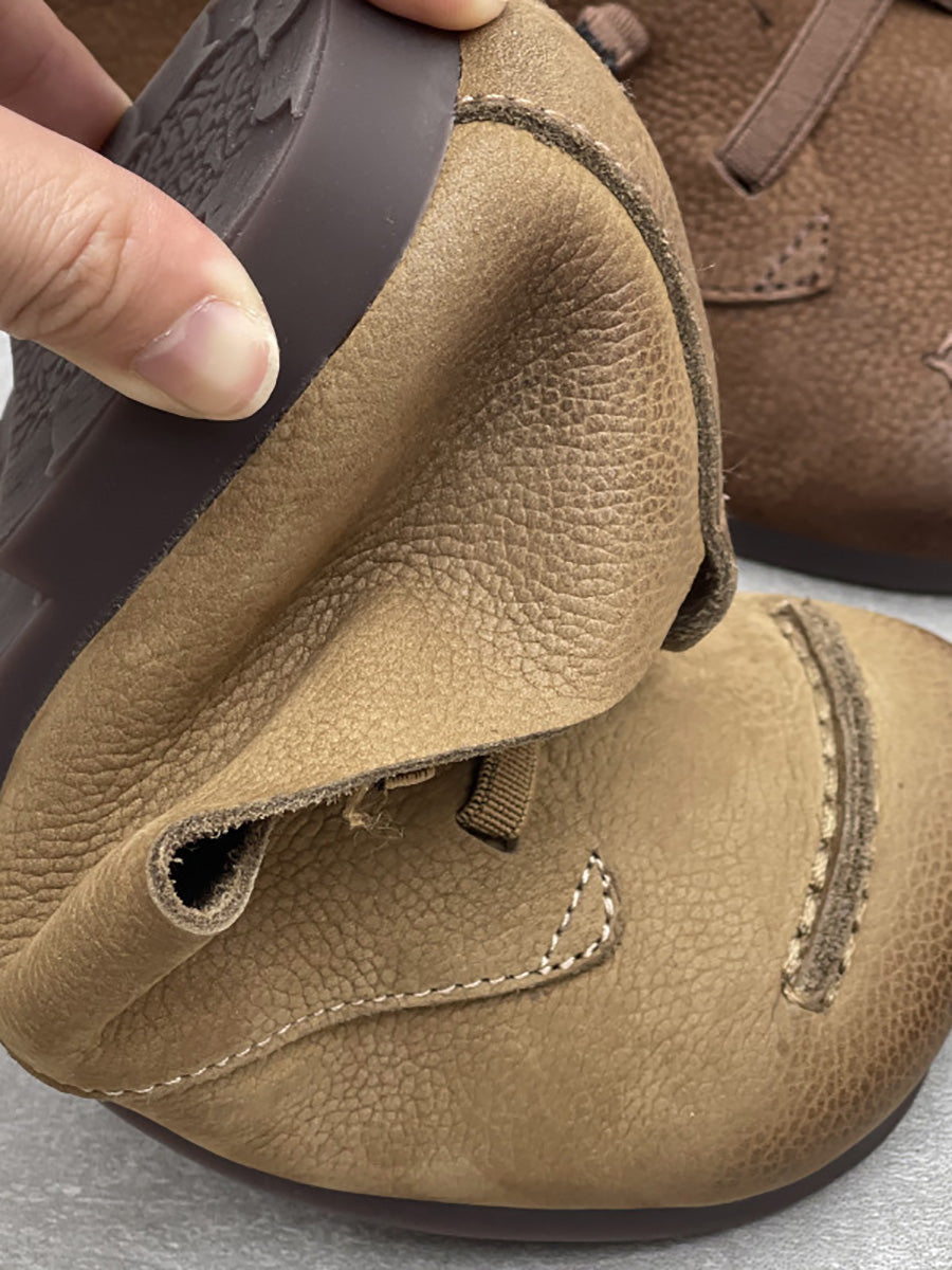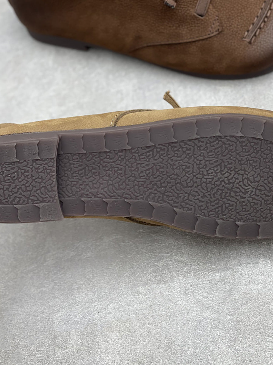 Women Retro Soft Leather Spliced Low Heel Shoes