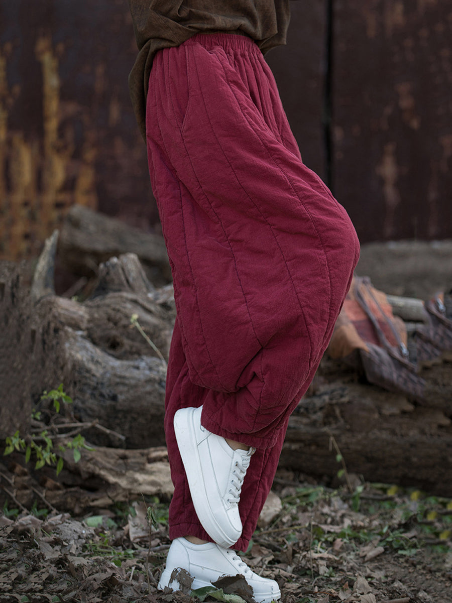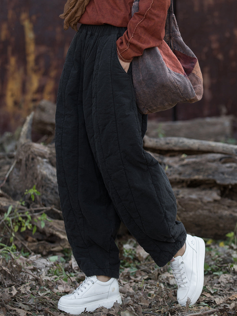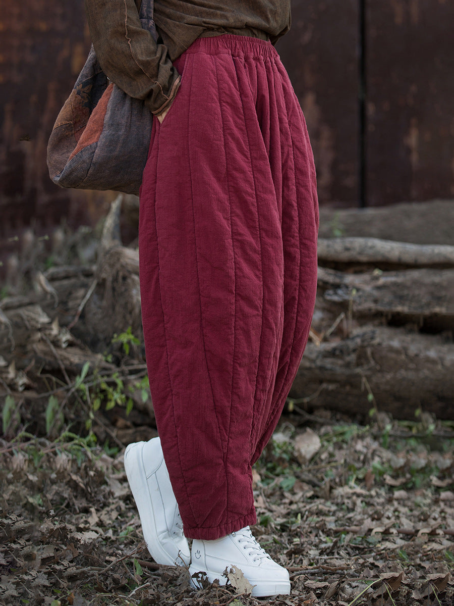 Women Retro Solid Stripe Stitching Thicken Harem Pants