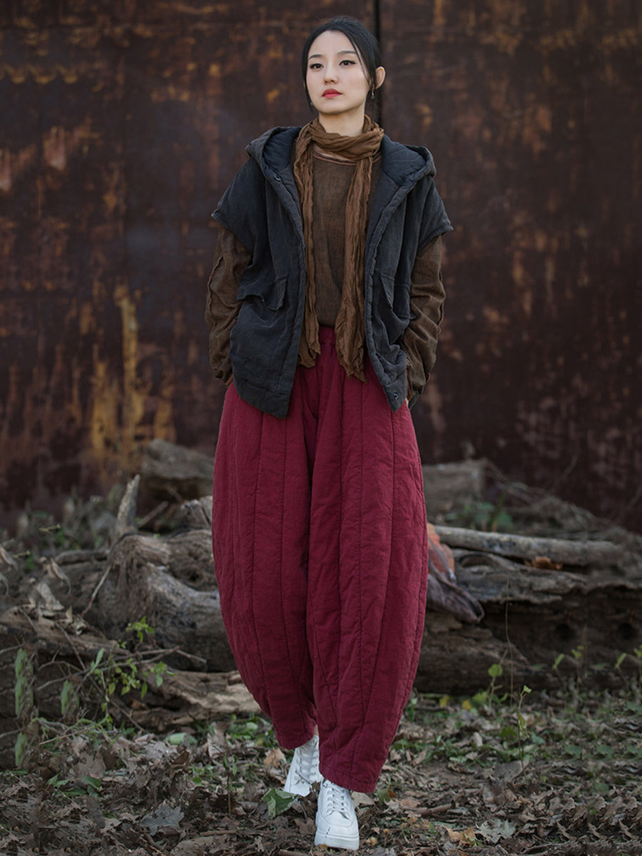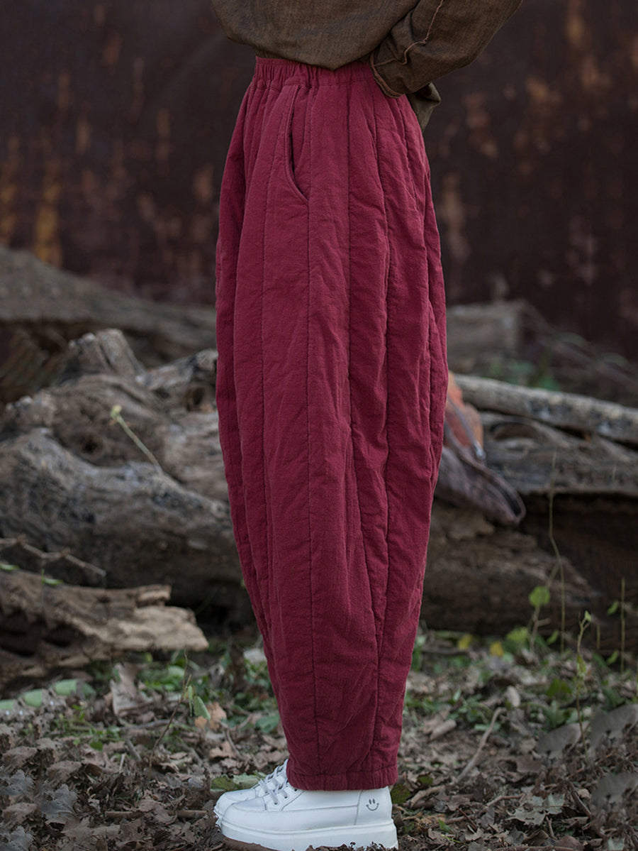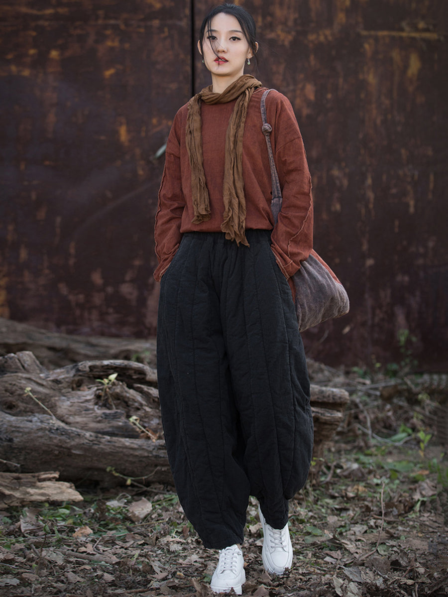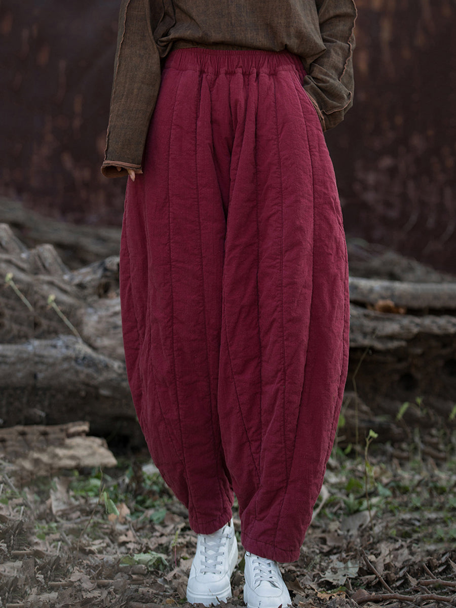 Women Retro Solid Stripe Stitching Thicken Harem Pants