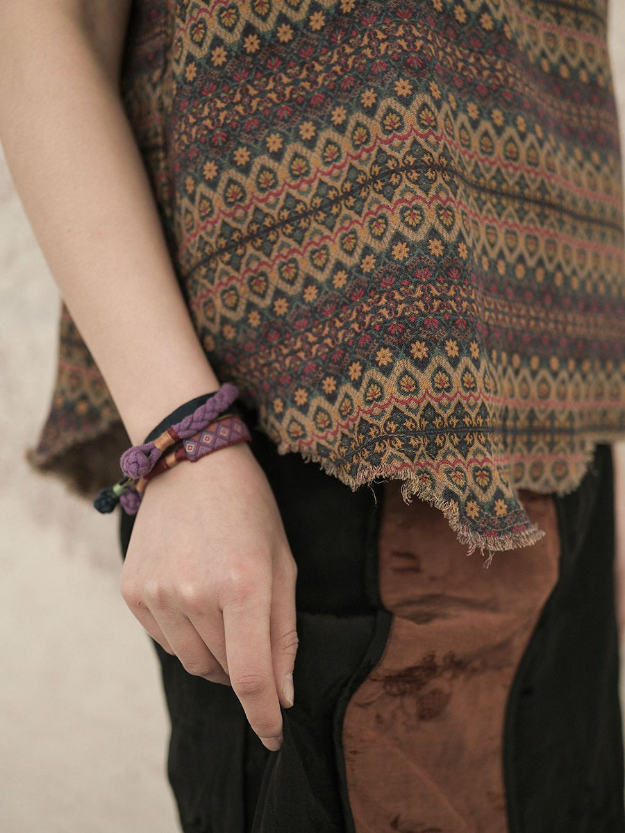 Women Retro Worn Irregular Hem Geometric Vest