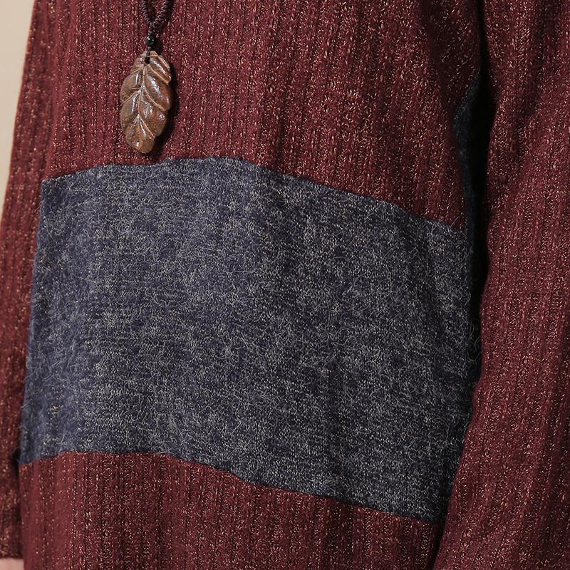 Women Round Neck Long Sleeve Splitting Sweater Dress