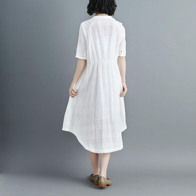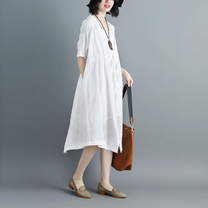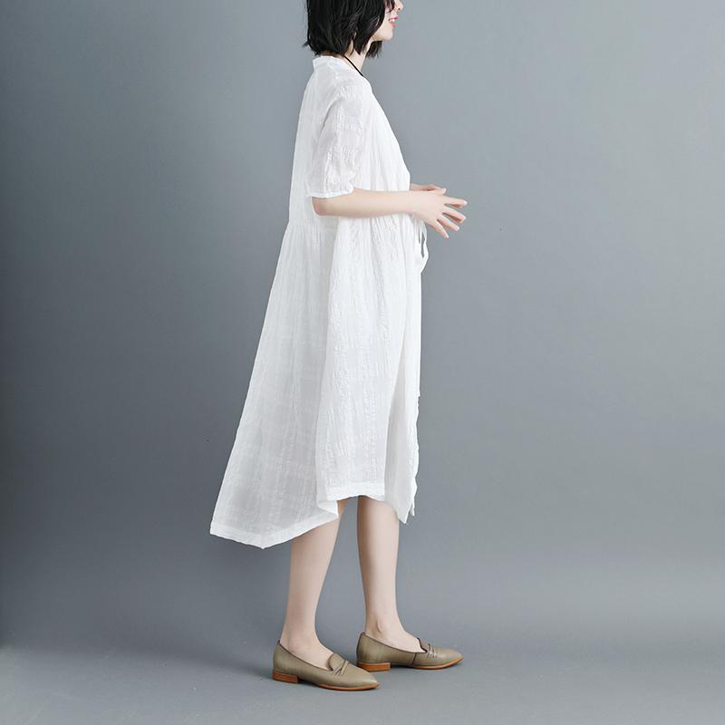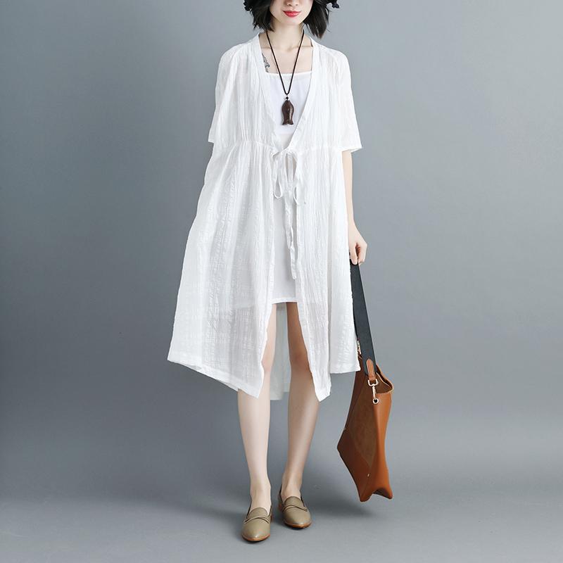 Women Short Sleeve White V Neck Lacing Cardigan