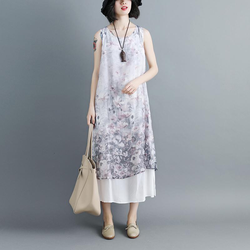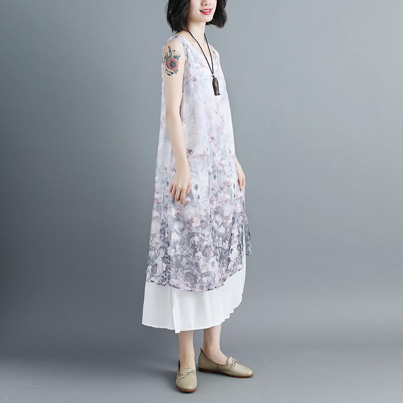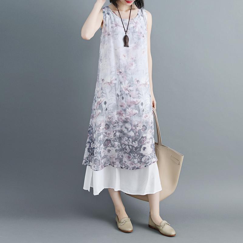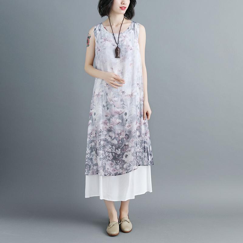 Women Sleeveless Printed Patchwork Pullovers Dress