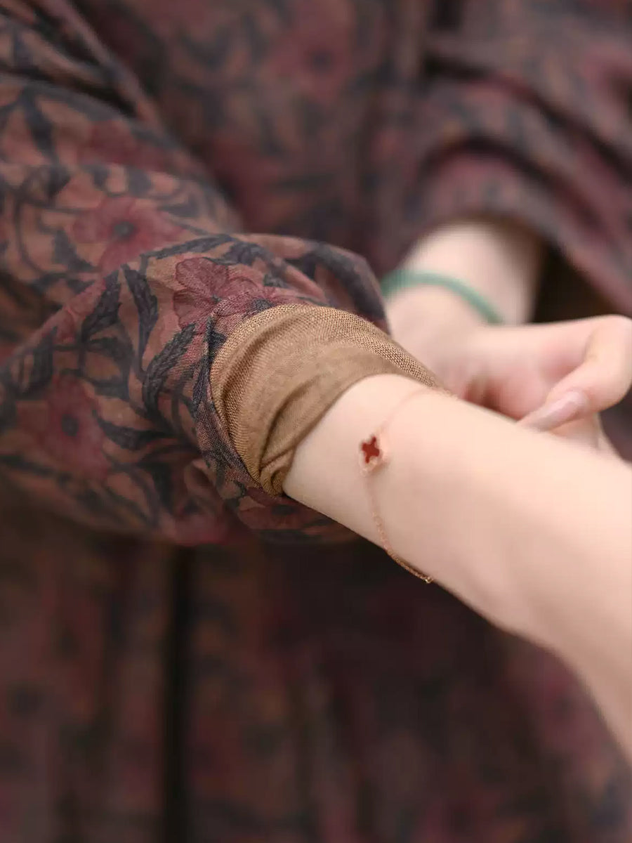 Plus Size Women Spring Retro Flower 100%Cotton O-Neck Loose Dress