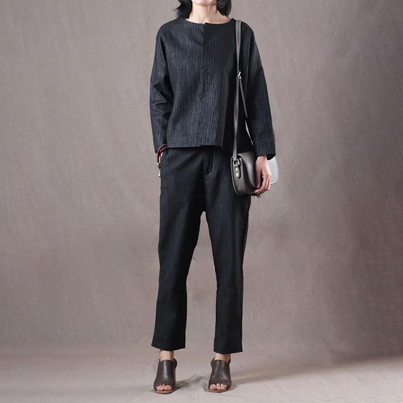 Women Spring Vintage Solid Straight Long Sleeve Cardigan Sets