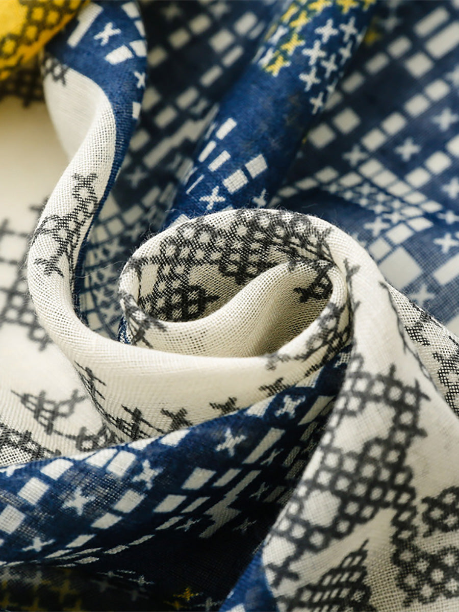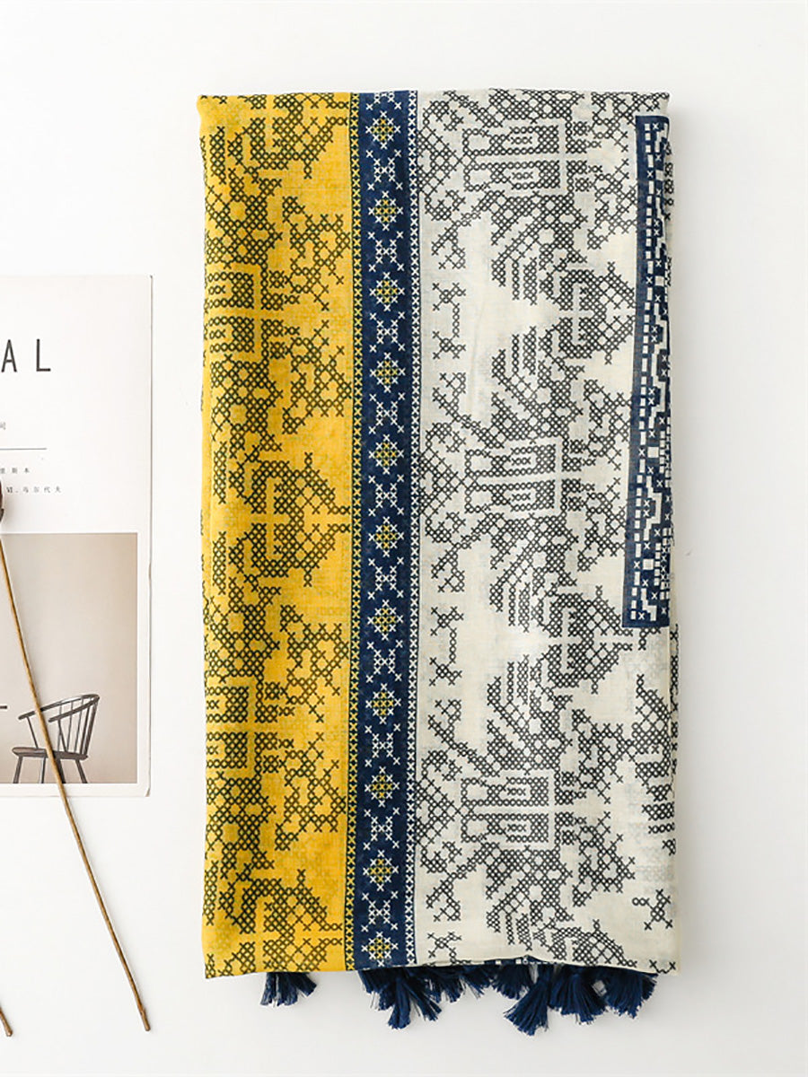 Women Summer Artsy Colorblock Tassel Shawl Scarf