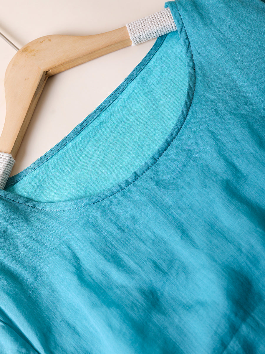 Plus Size Women Summer Artsy Pure Color O-Neck 100%Ramie Dress