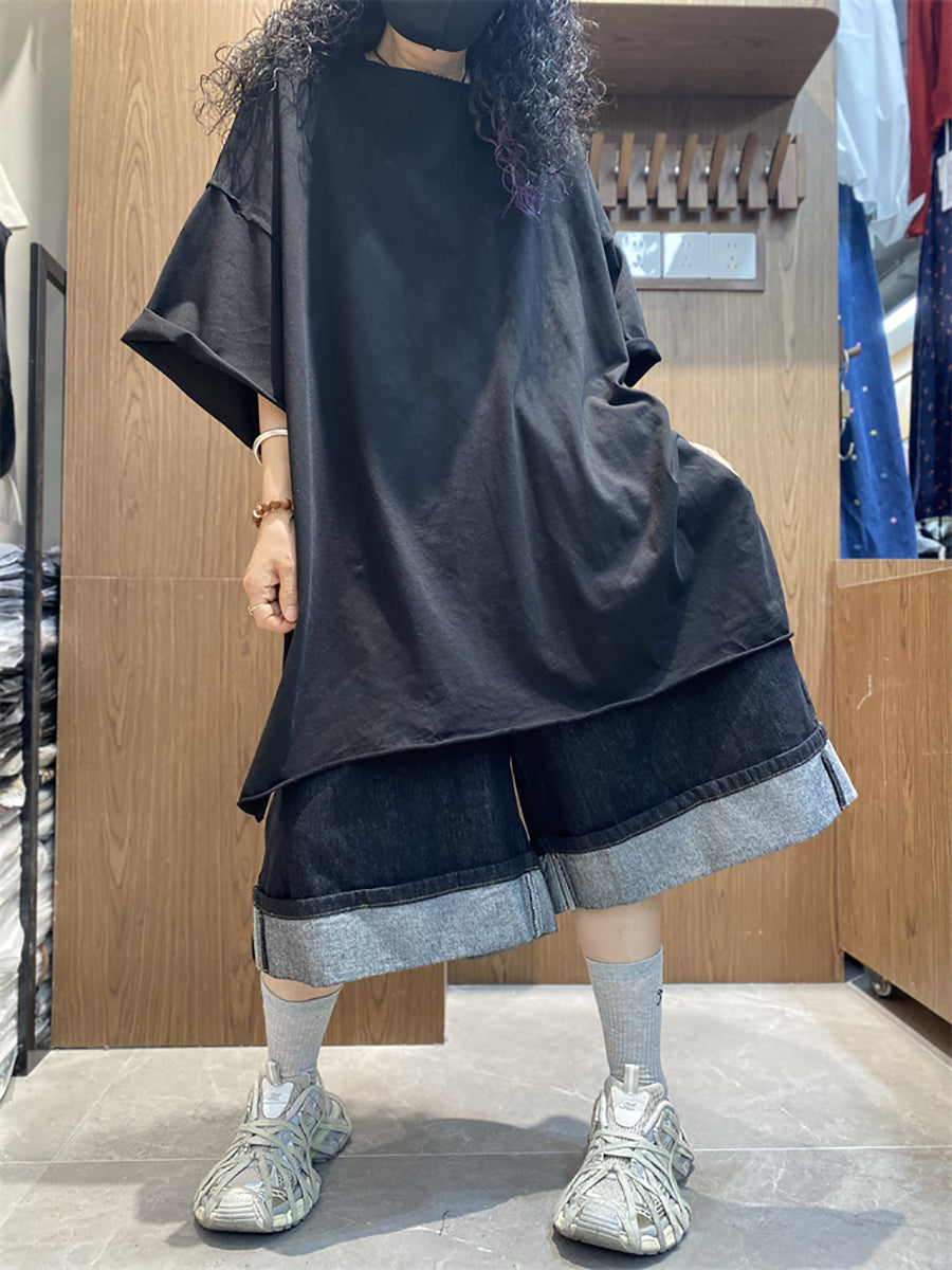 Plus Size Women Summer Casual Pure Color O-Neck Cotton Shirt